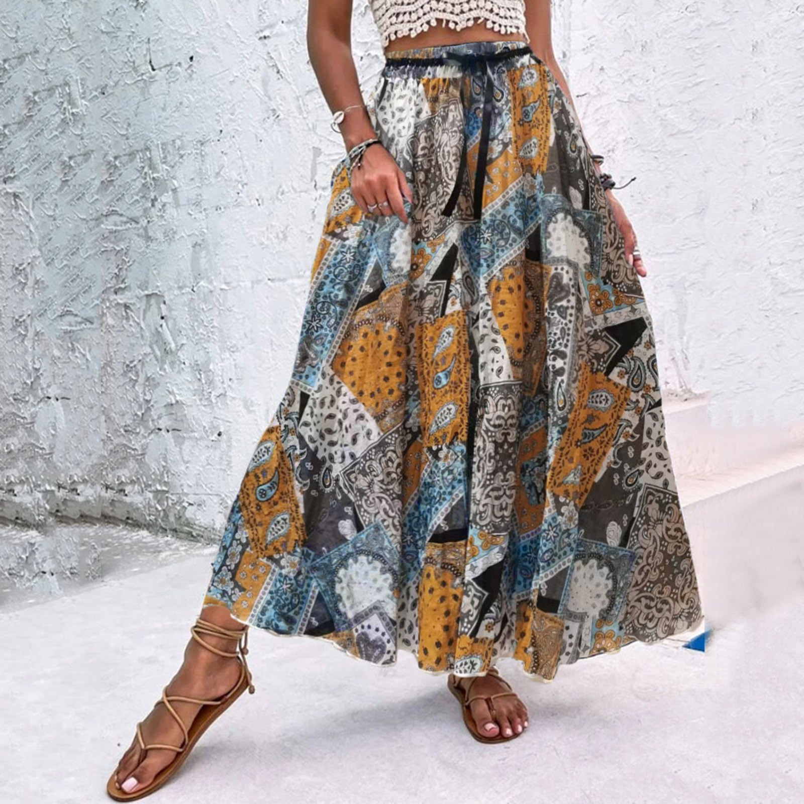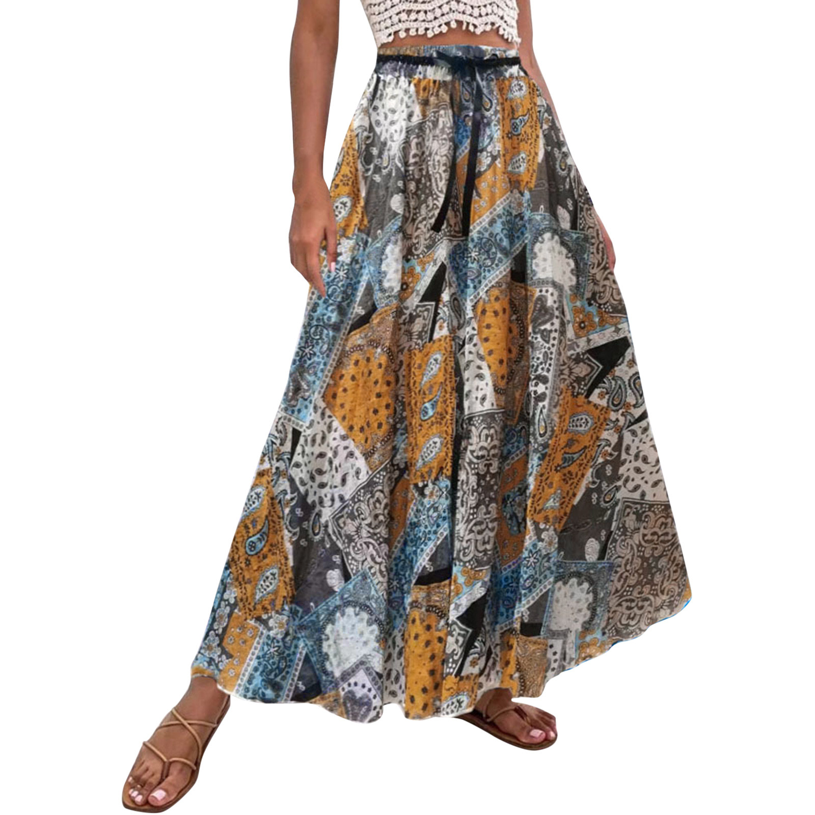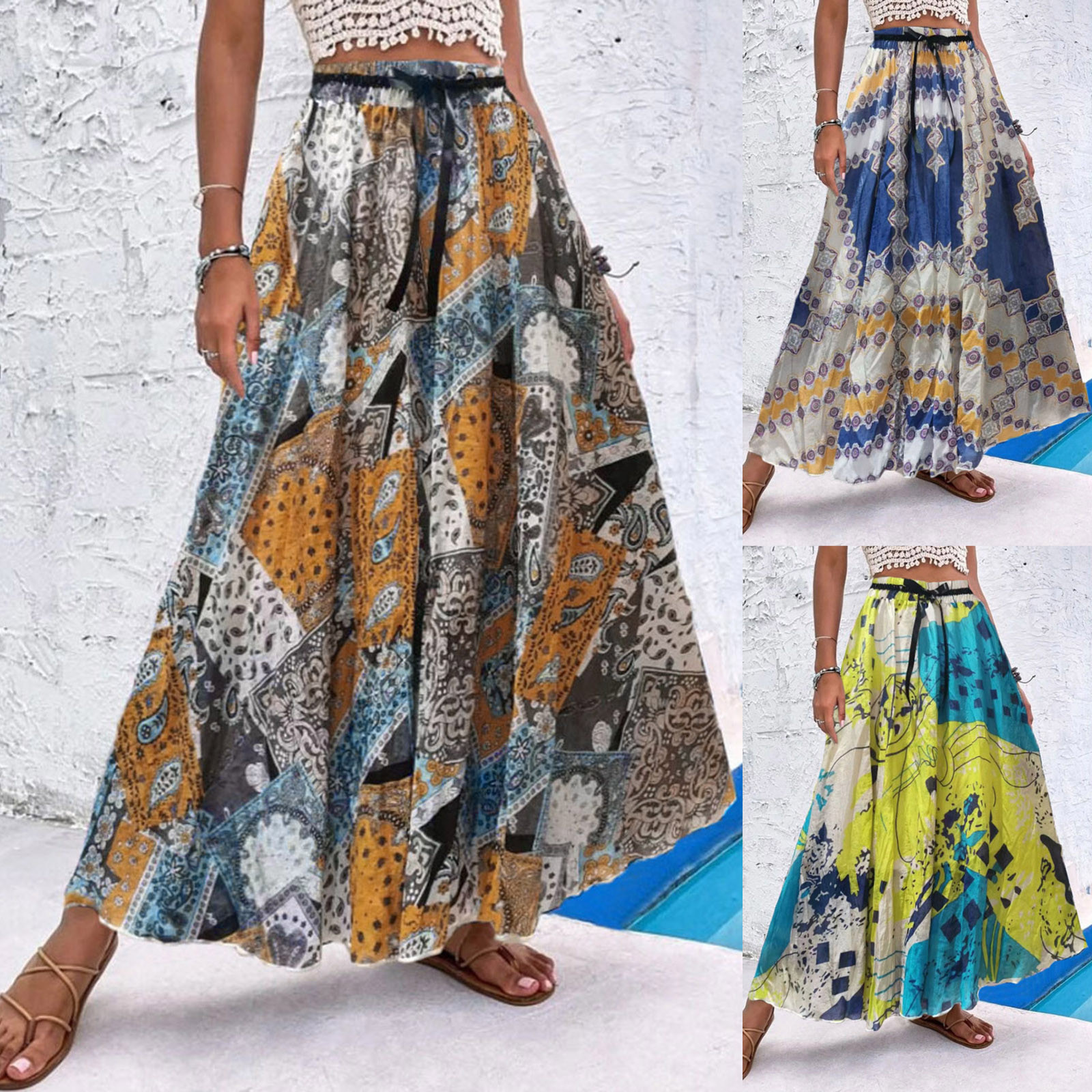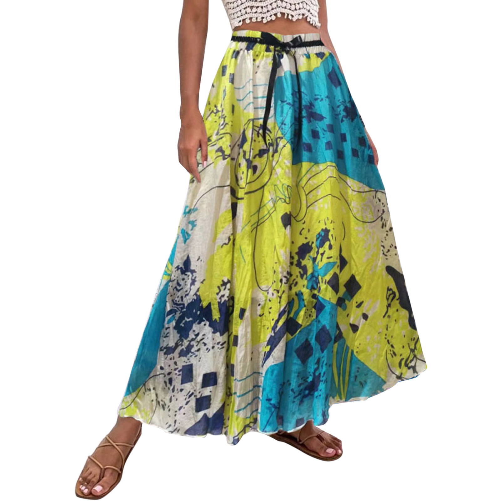 Эта юбка-макси с качелями подходит к универсальному образу, который можно носить случайно или одевать. Регулируемый дизайн на завязках в верхней части эластичного пояса делает эту летнюю пляжную юбку более удобной при ношении, и не беспокойтесь о том, что она упадет. Отлично сочетается с топами на бретелях, футболками, бикини, сандалиями, плоской подошвой, каблуками в жаркое лето.