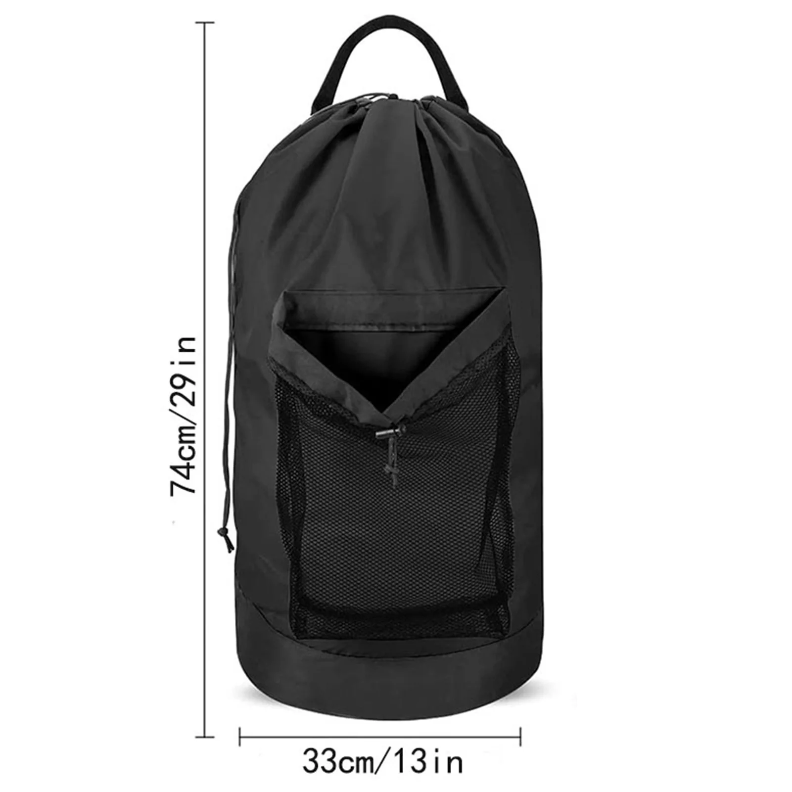Описание: Изготовлен из износостойкой и прочной ткани Оксфорд 600D, этот портативный рюкзак для стирки водонепроницаемый и машинная стирка. Он достаточно прочный, чтобы выдерживать вес 44 фунтов. И усиленная прострочка на каждом соединении гарантирует, что шов не оторвется легко, обеспечивая более длительный срок службы. Характеристики: Название: рюкзак для стирки Материал: 600D ткань Оксфорд Размер: около 33*74 см/13*29 дюймов Цвет: черный Особенности: Большая емкость Внешний сетчатый карман Отличное качество Регулируемые плечевые ремни С ручкой Посылка: Рюкзак для стирки * 1