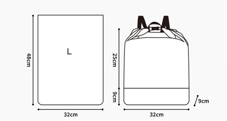 Размер L: L32 * W9 * h25 см 12,59*3,54*9,84 дюйма (9 см с карманом для обуви)