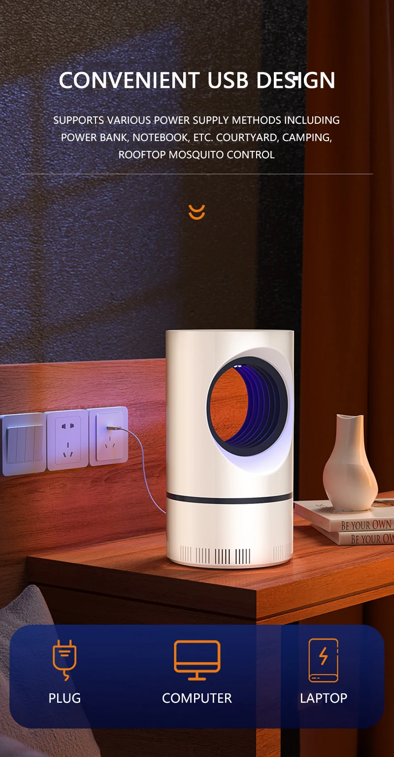 2.[удобный]-Эта практичная ловушка для комаров очень проста в использовании для всех. Его можно подключить к любому устройству с usb-портом или обычным адаптером (не входит в комплект)