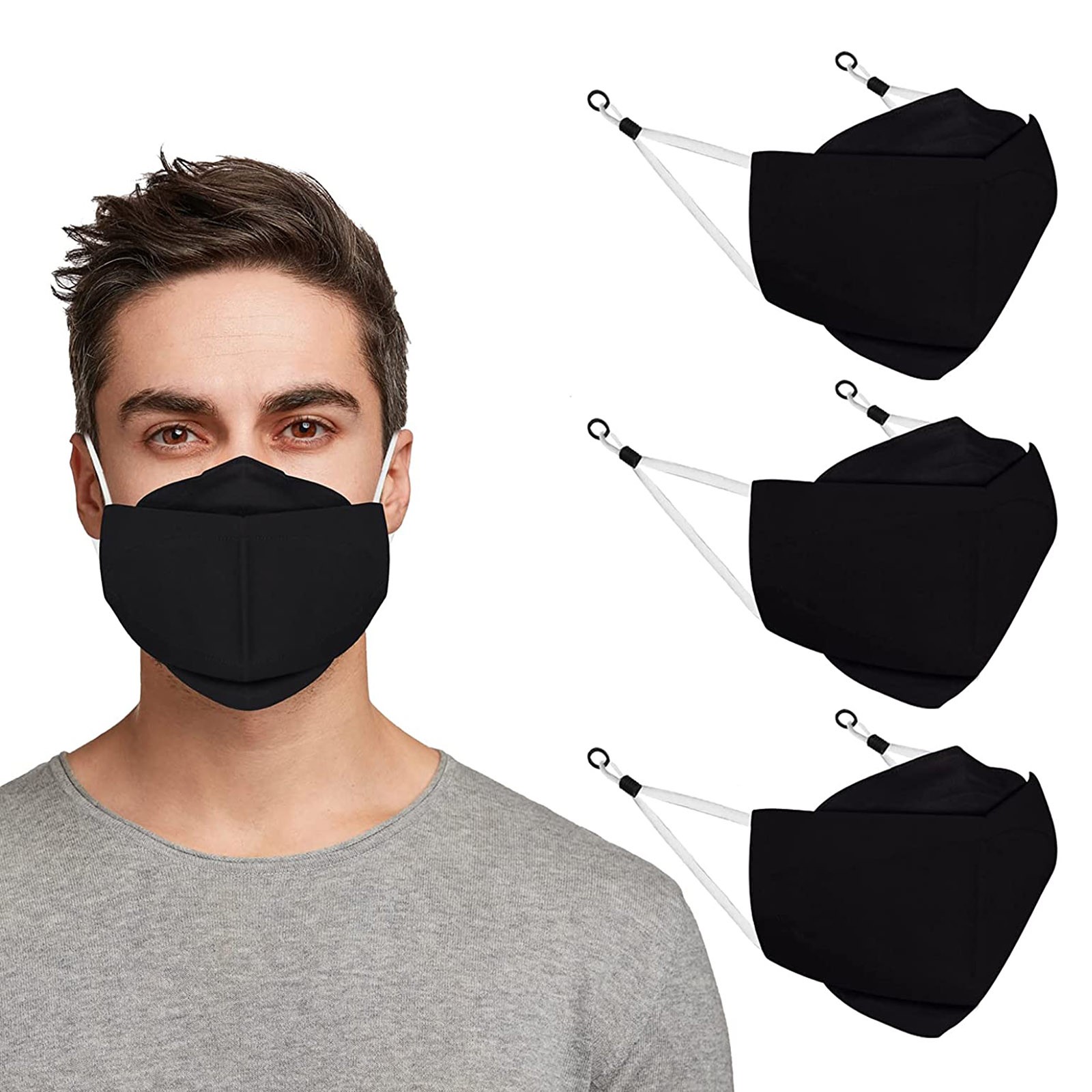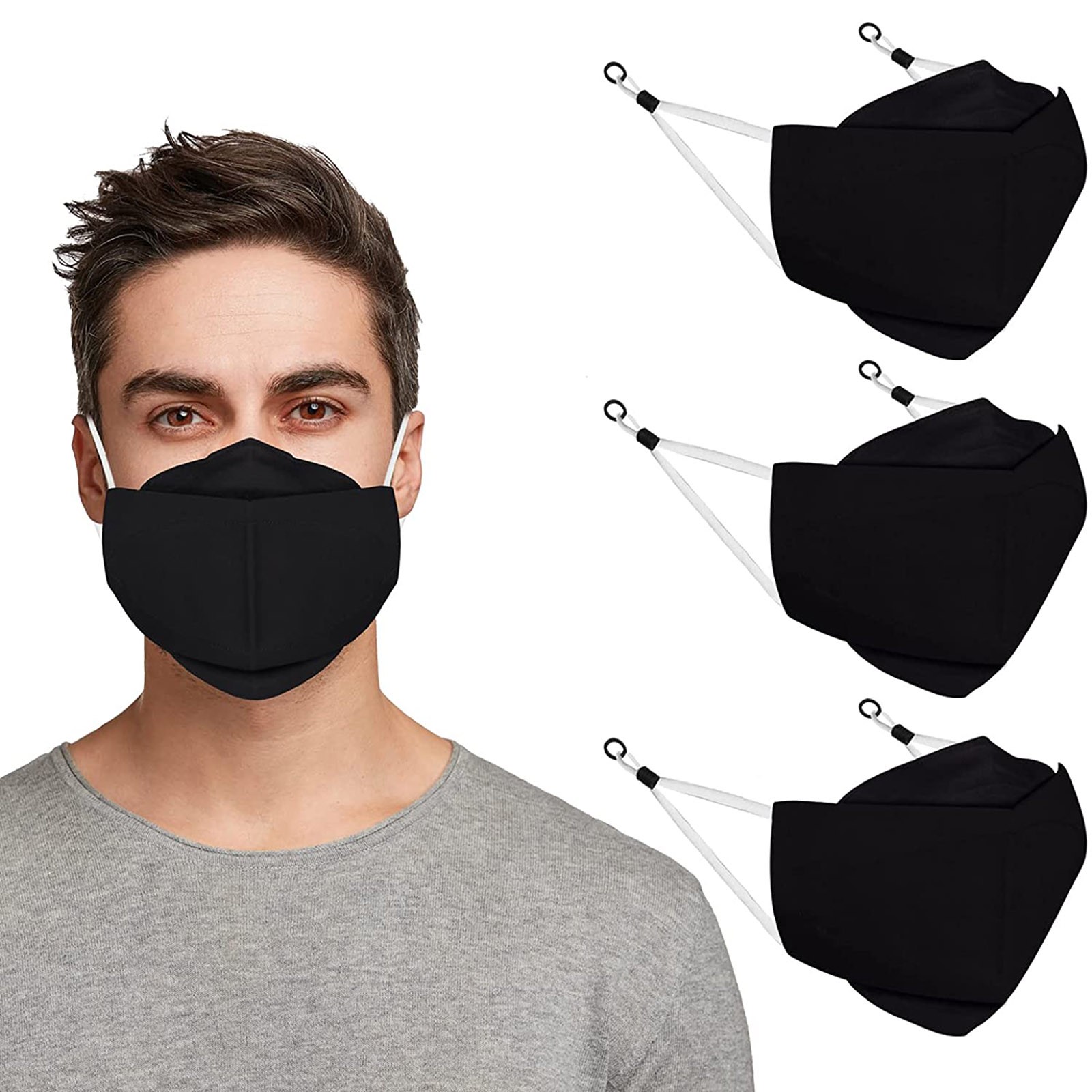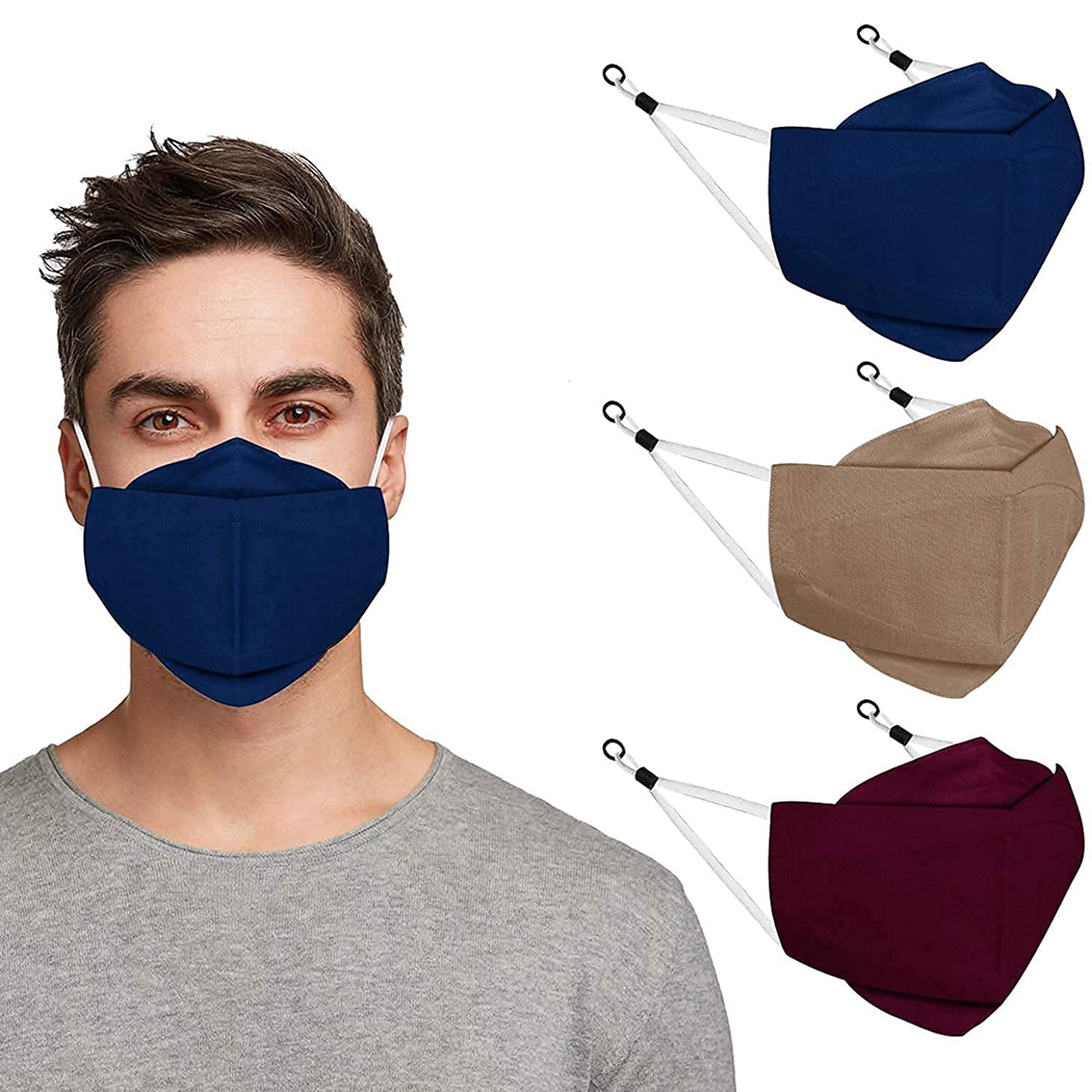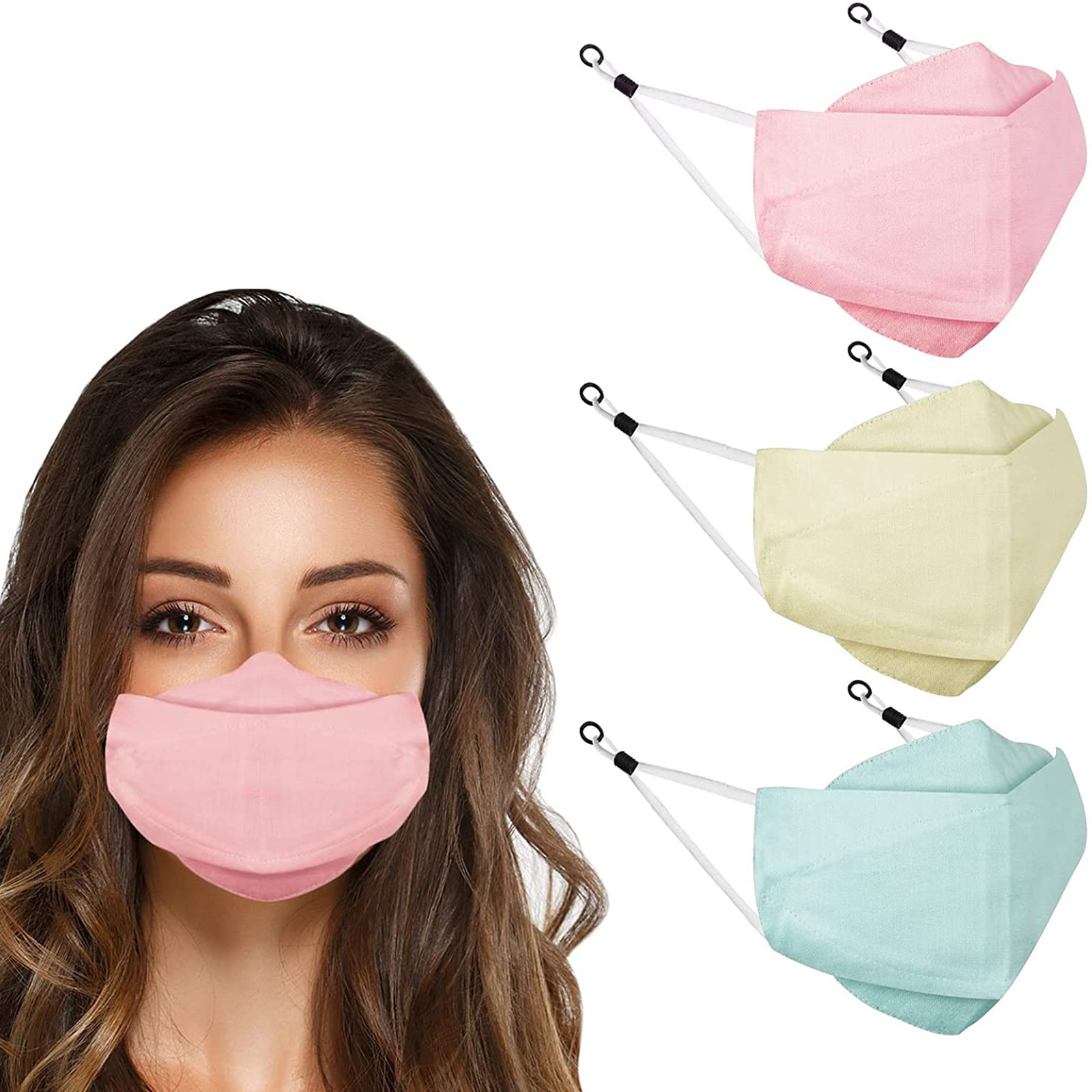 3 Тканевые маски для лица с проволокой для носа и регулируемыми петлями для ушей (3 шт. в упаковке)
