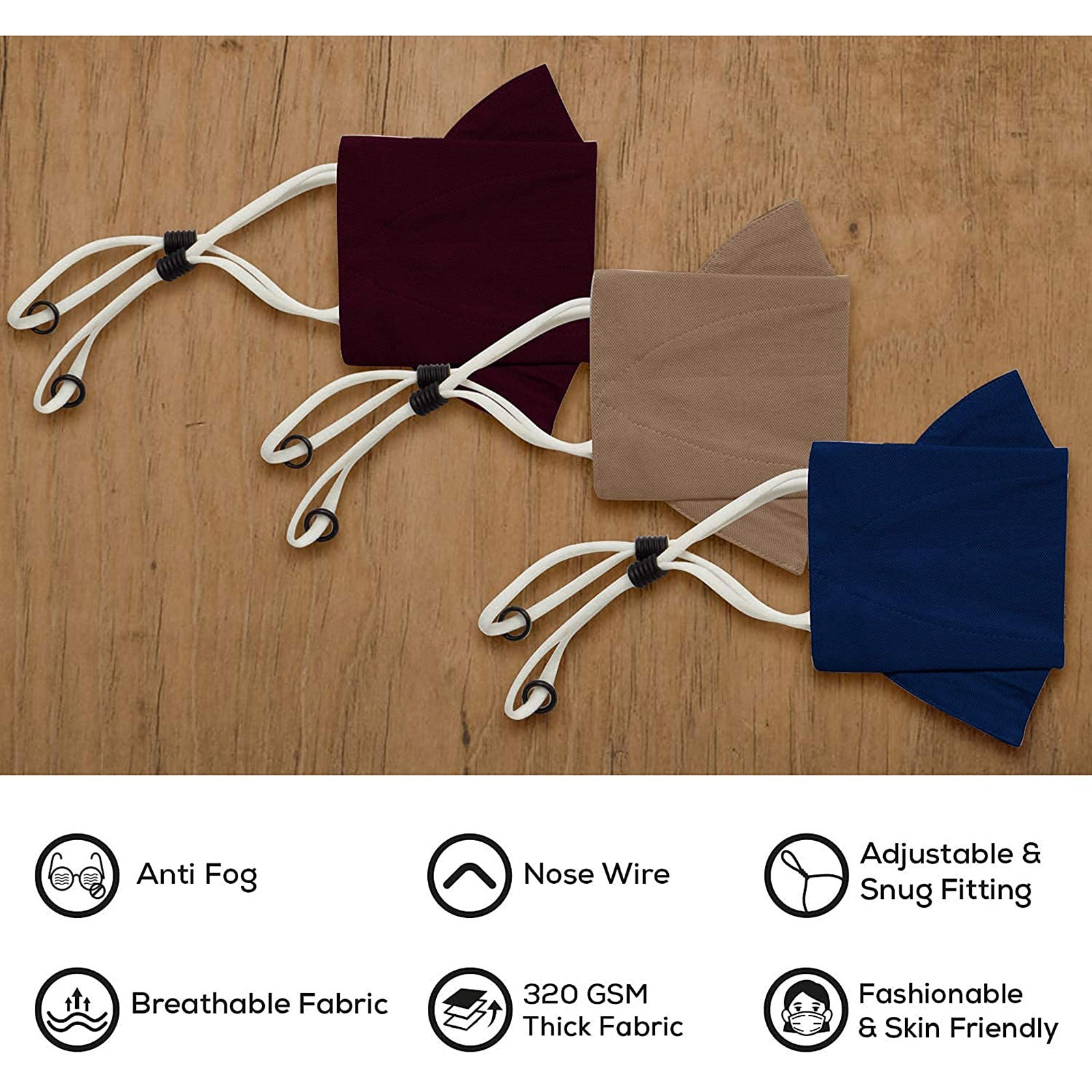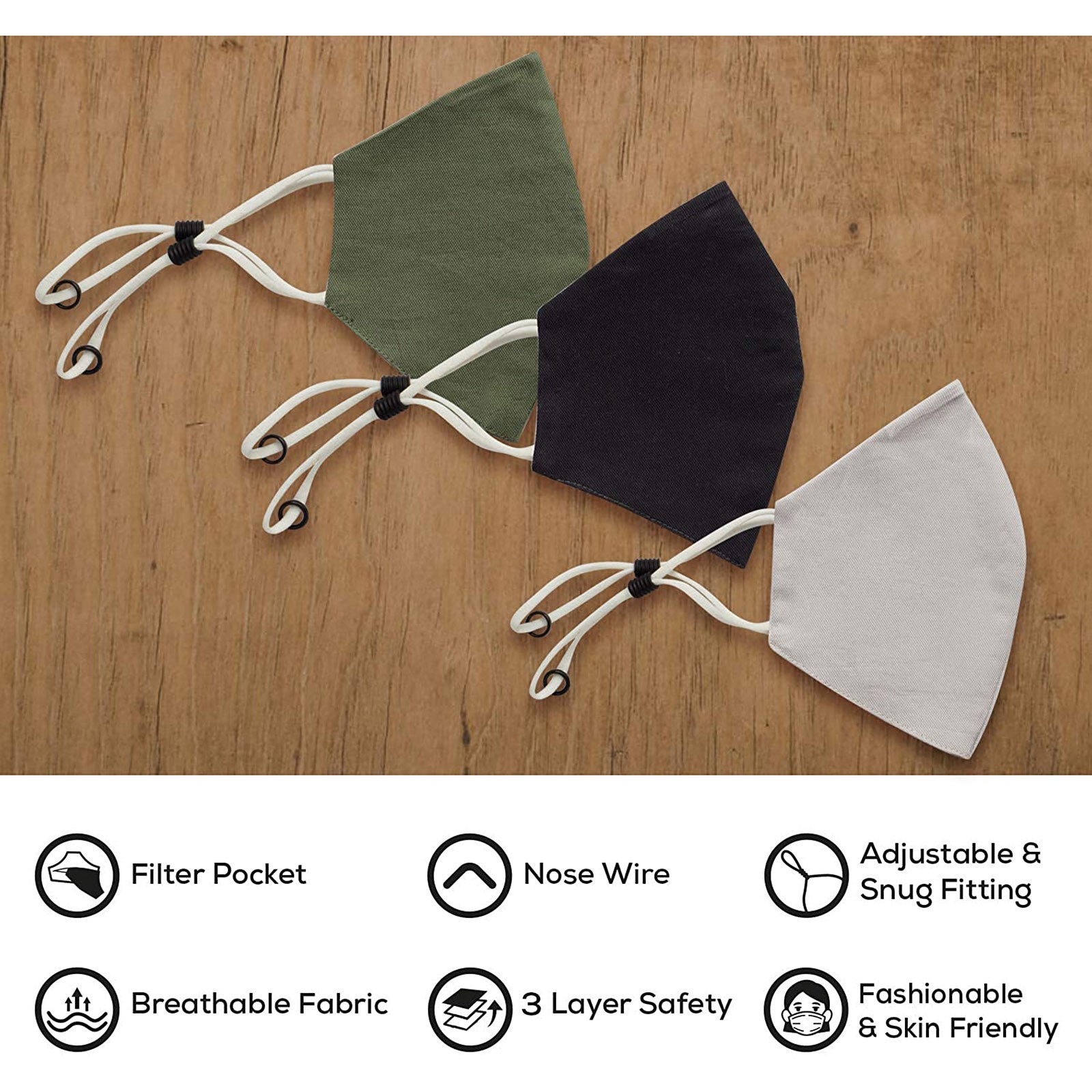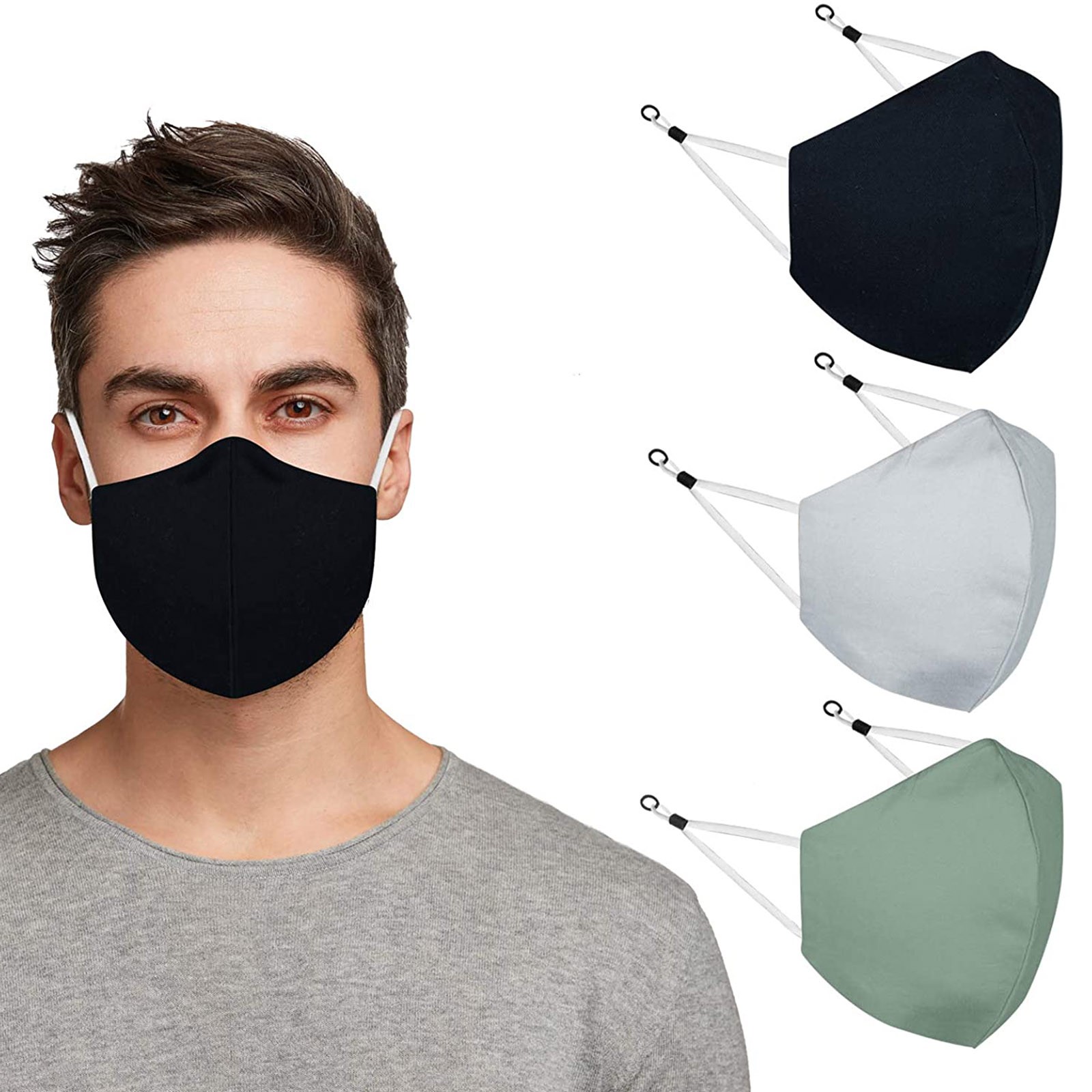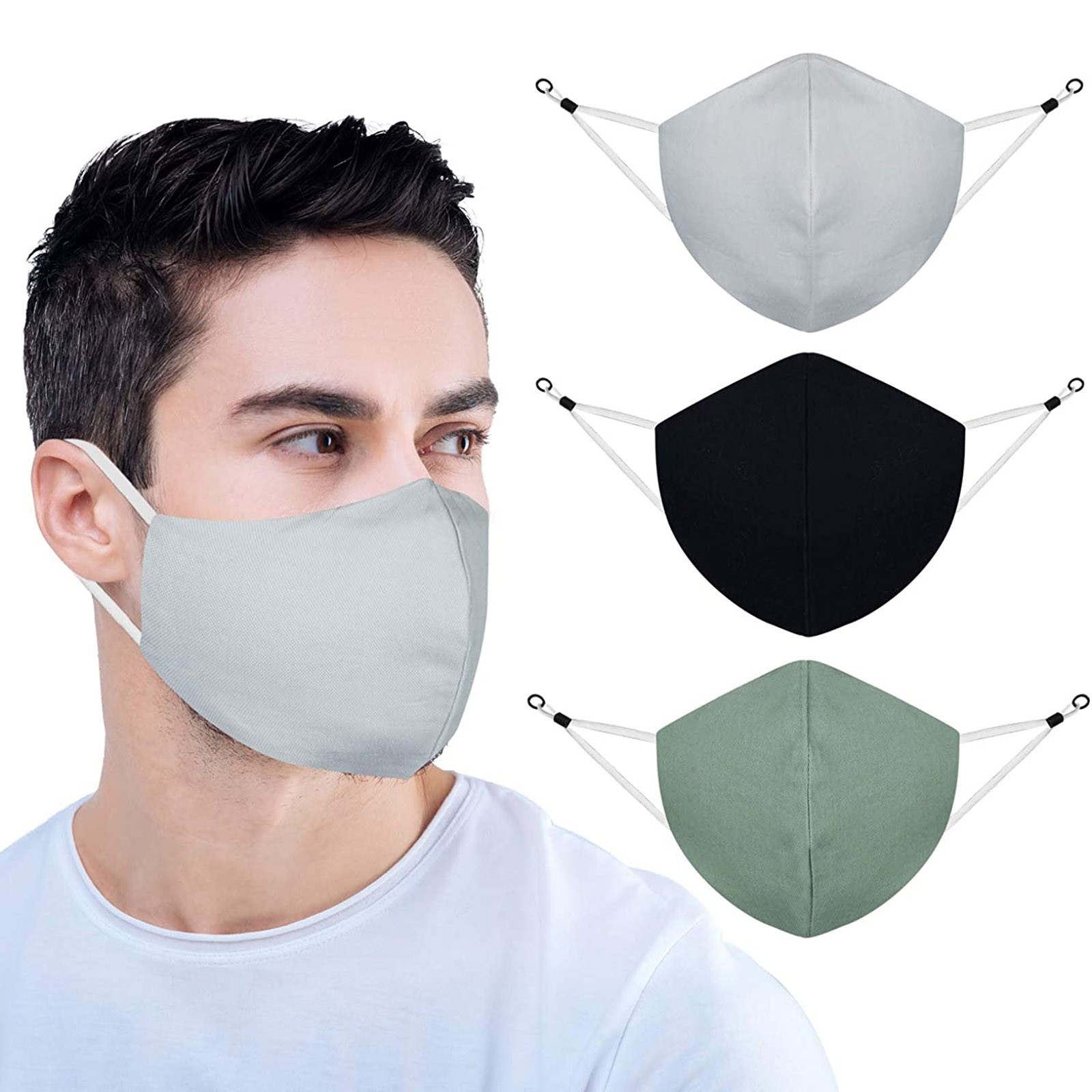 3 Тканевые маски для лица с проволокой для носа и регулируемыми петлями для ушей (3 шт. в упаковке)