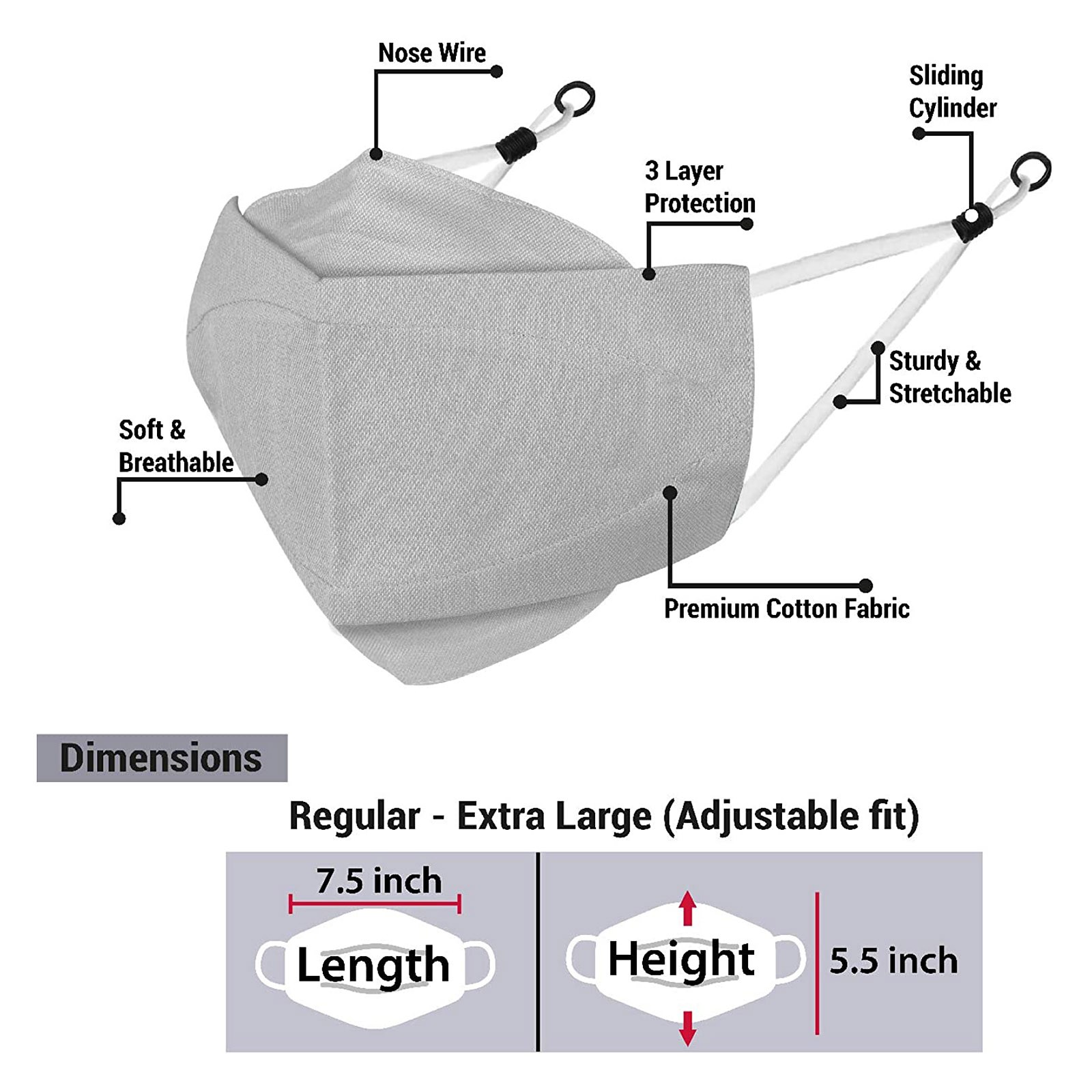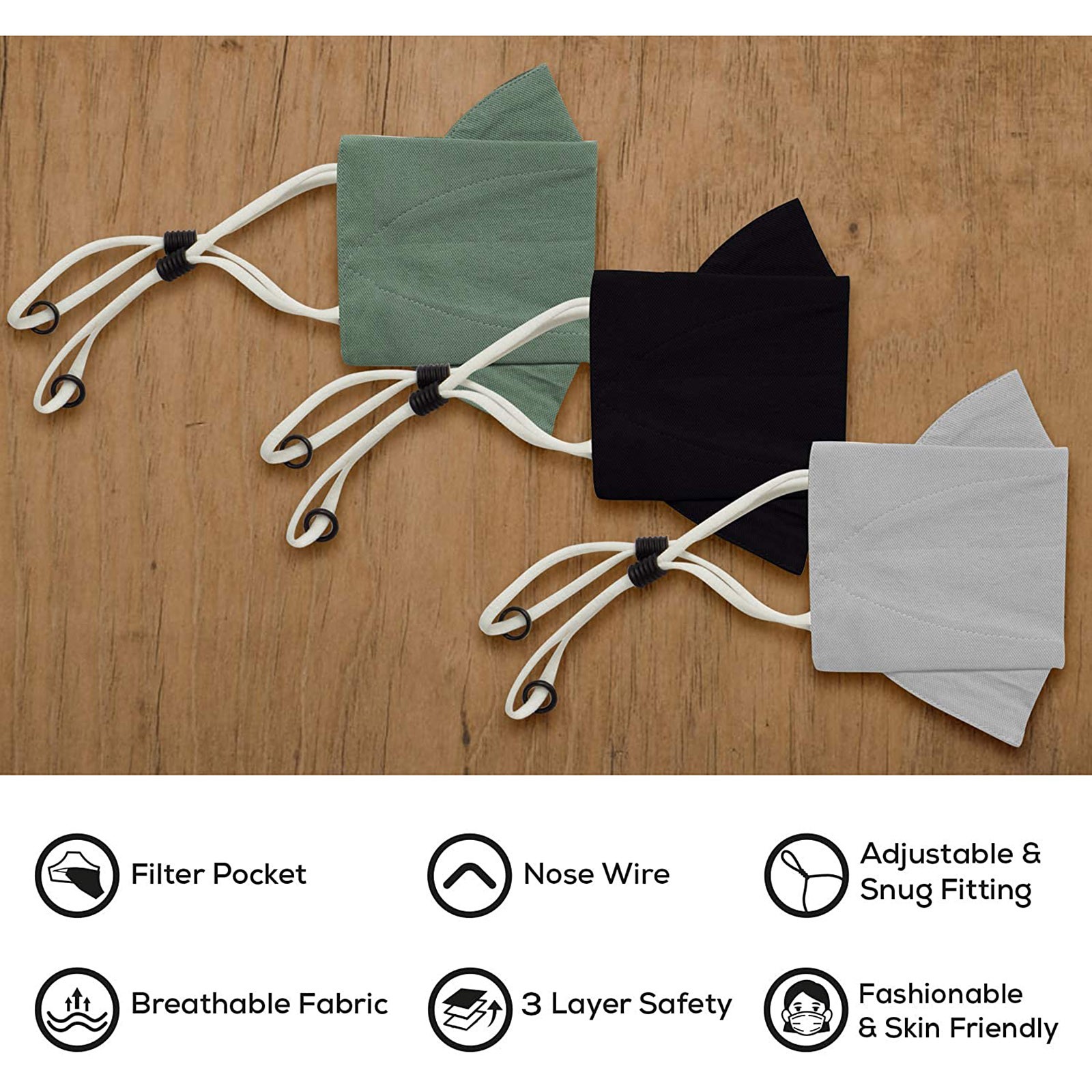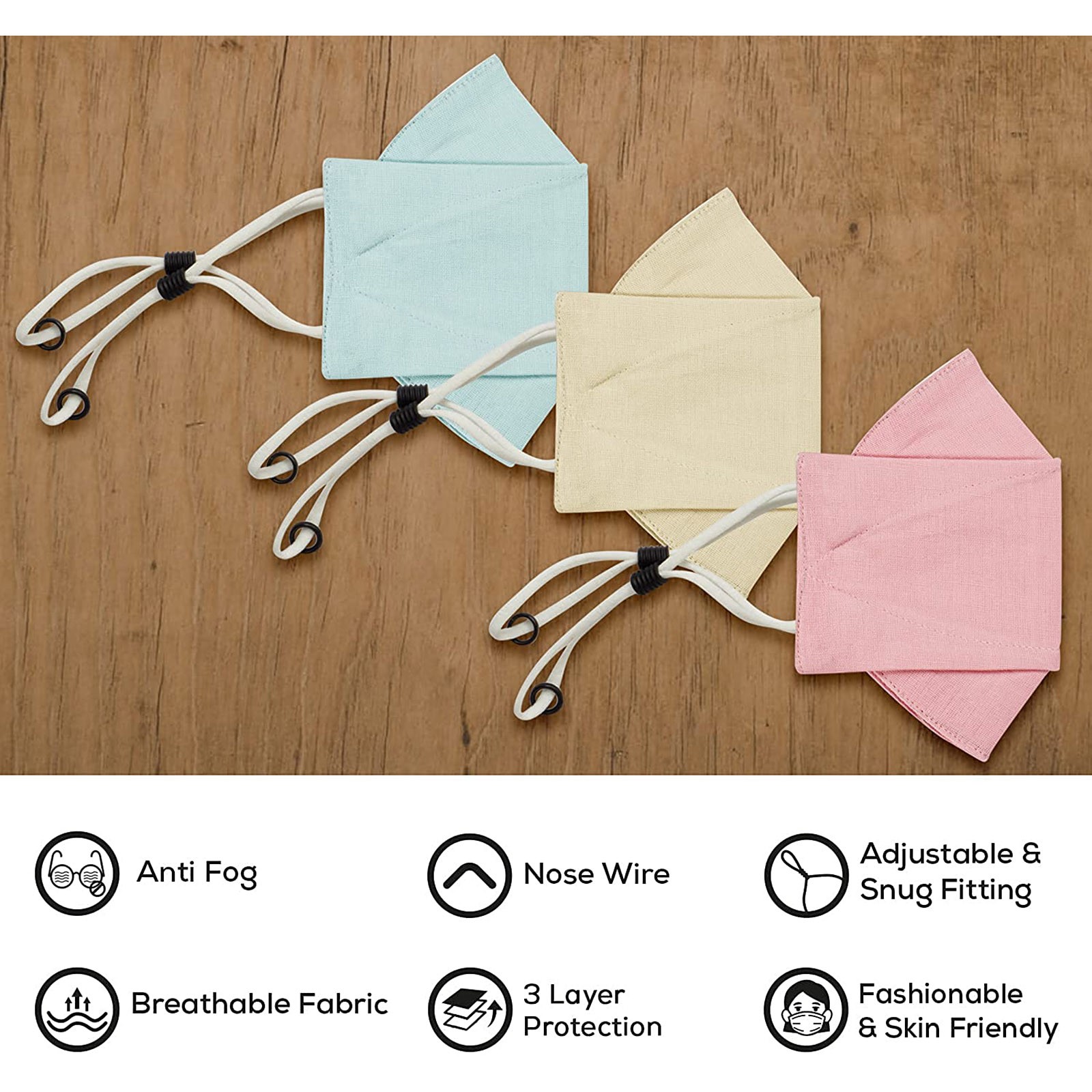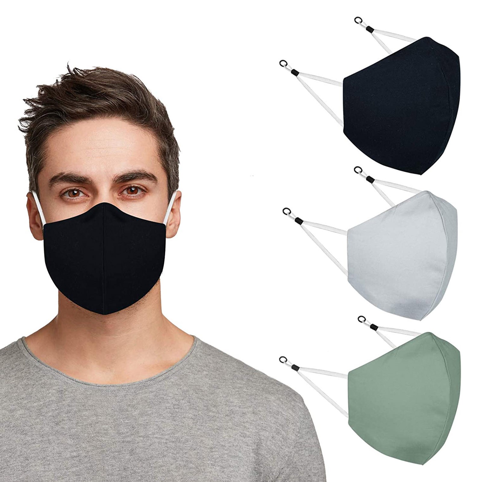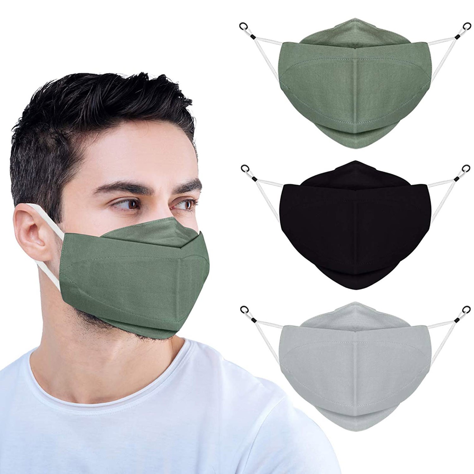 3 Тканевые маски для лица с проволокой для носа и регулируемыми петлями для ушей (3 шт. в упаковке)