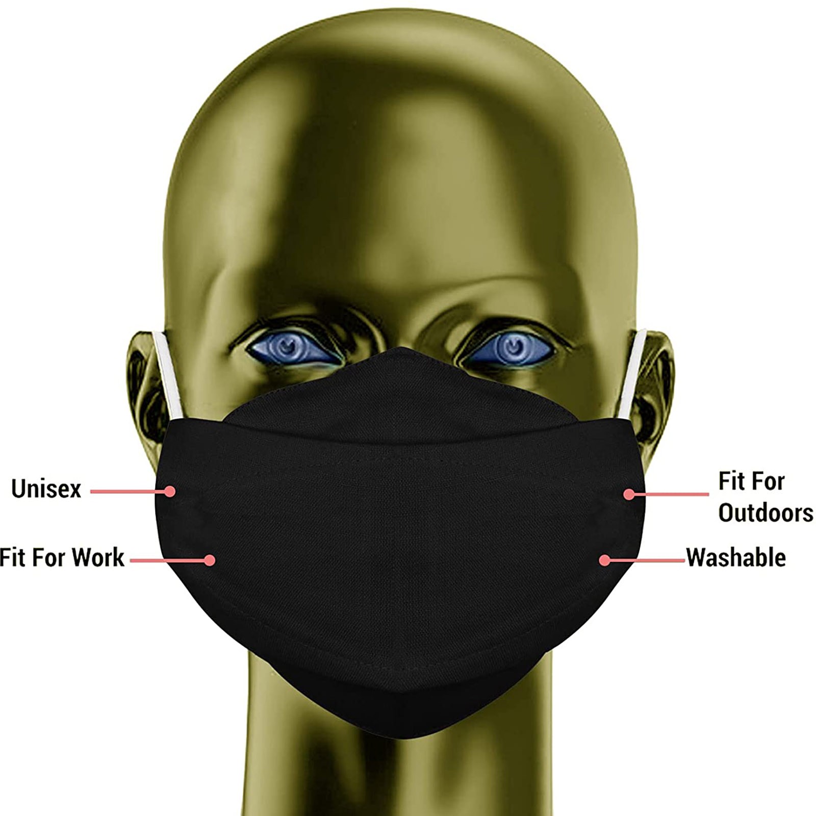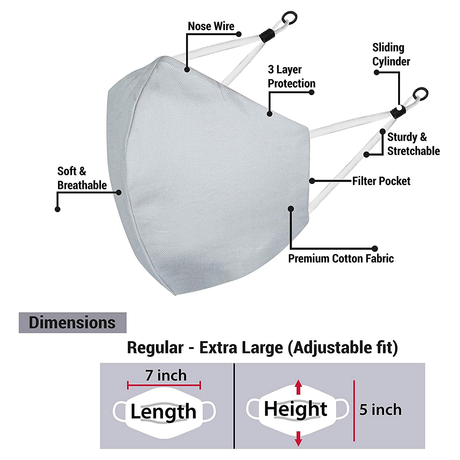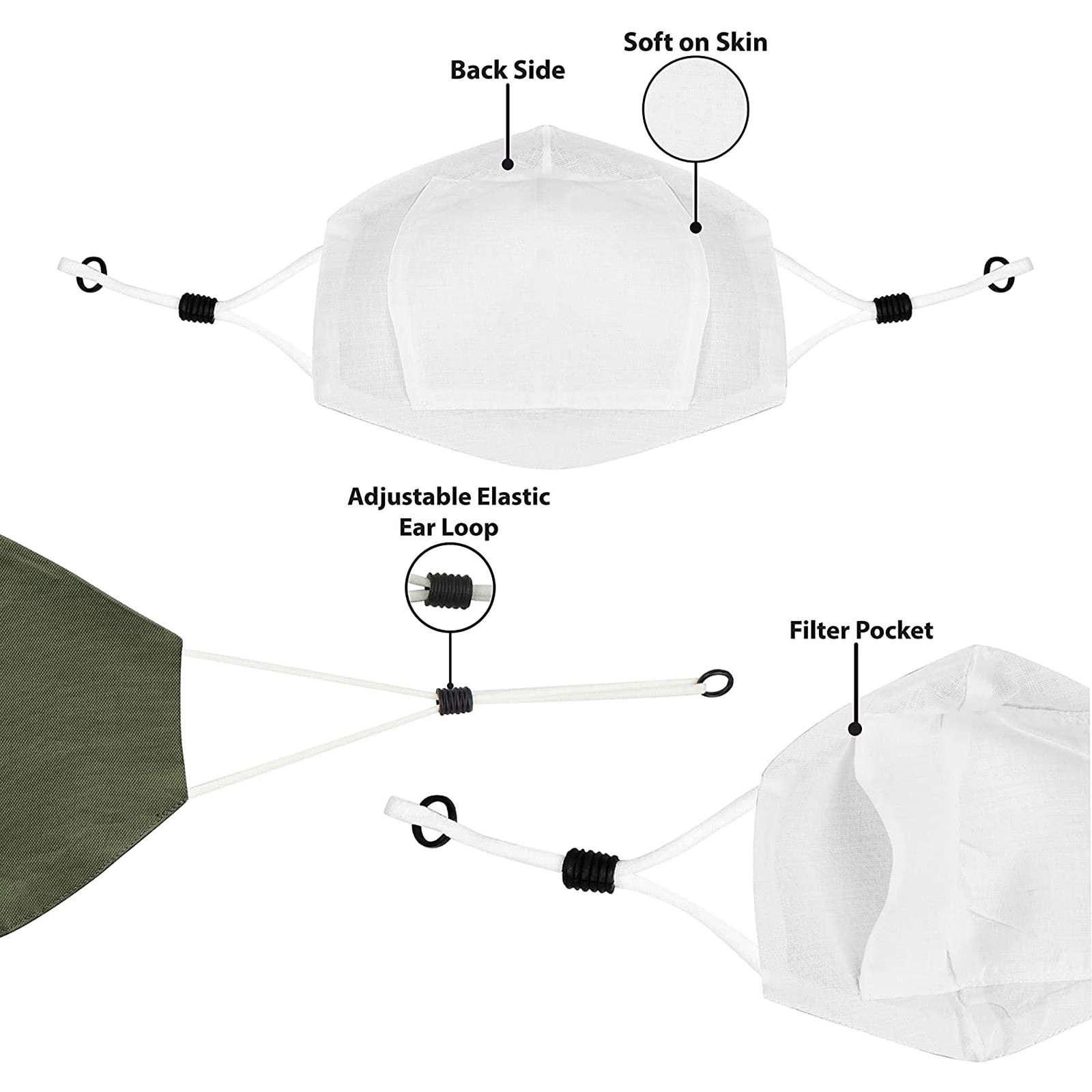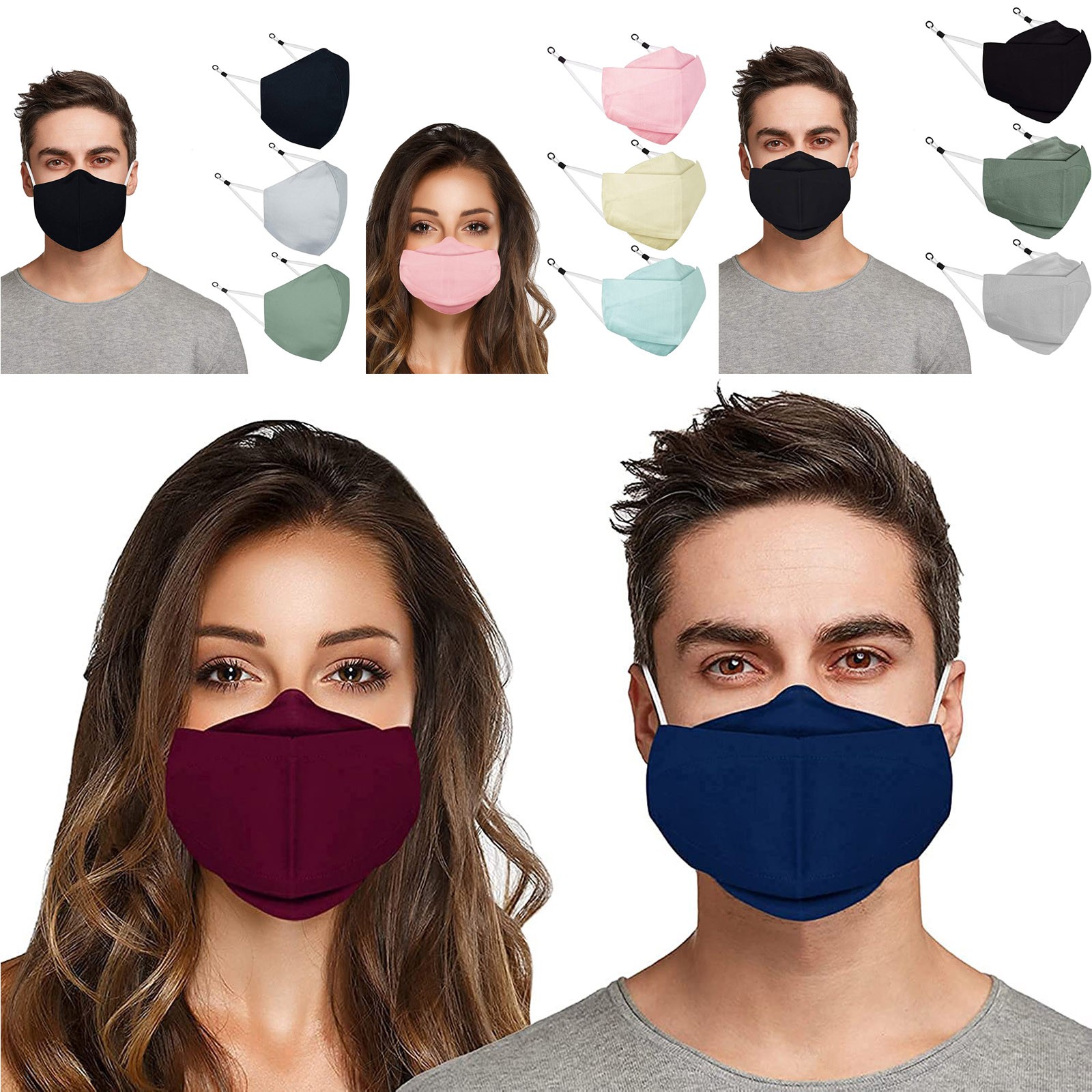 3 Тканевые маски для лица с проволокой для носа и регулируемыми петлями для ушей (3 шт. в упаковке)