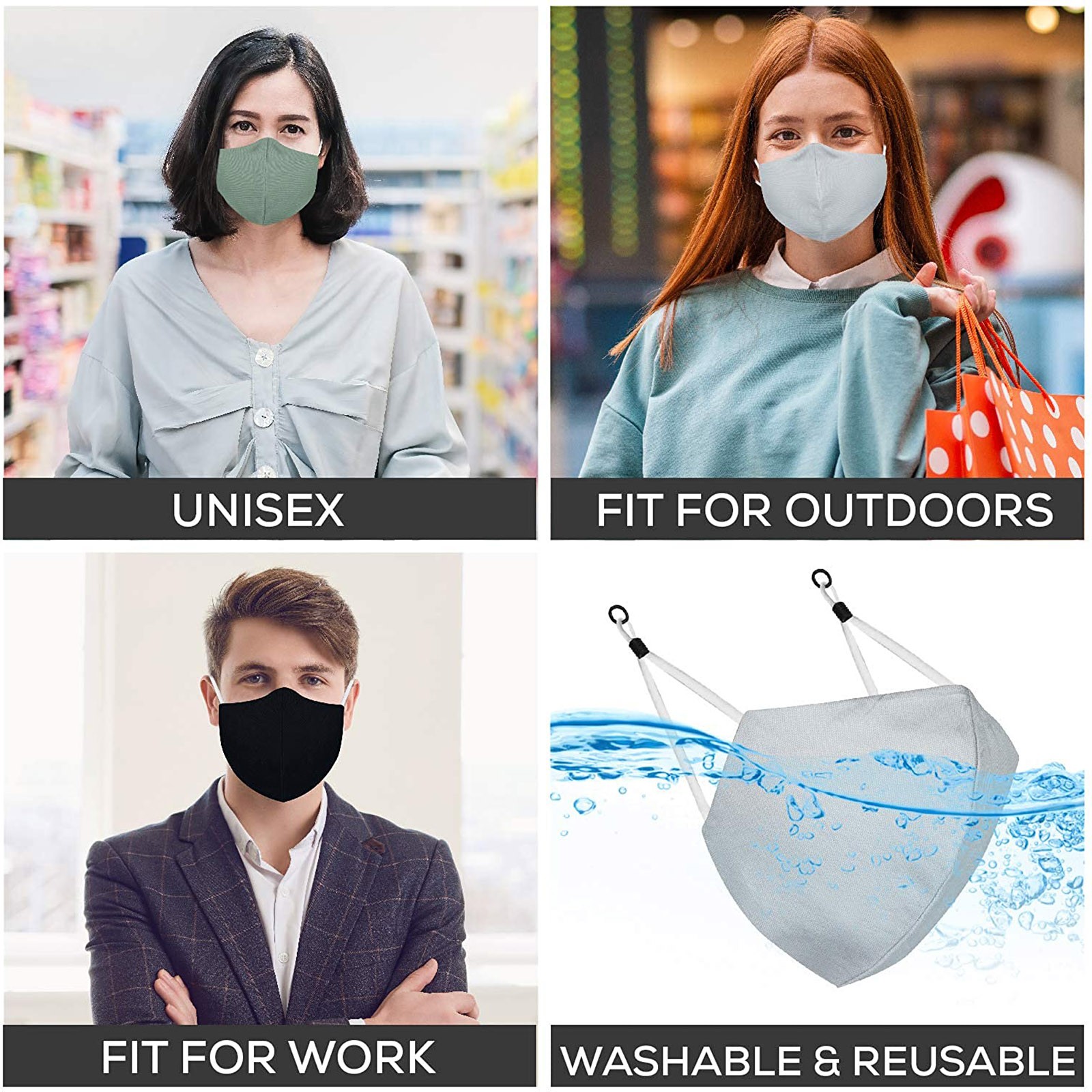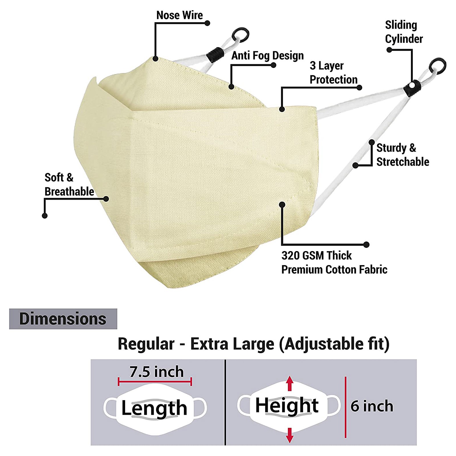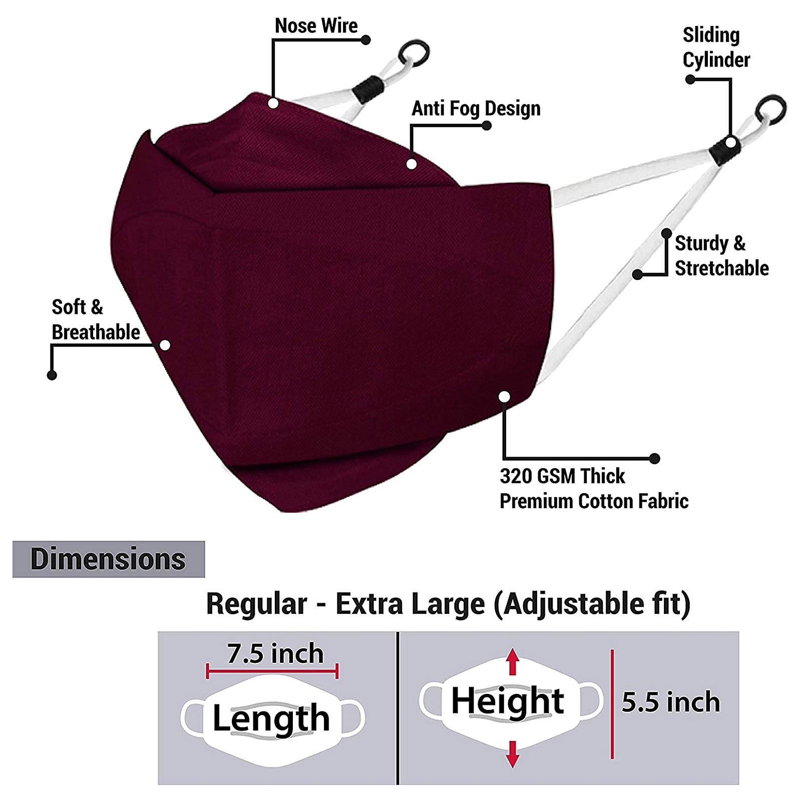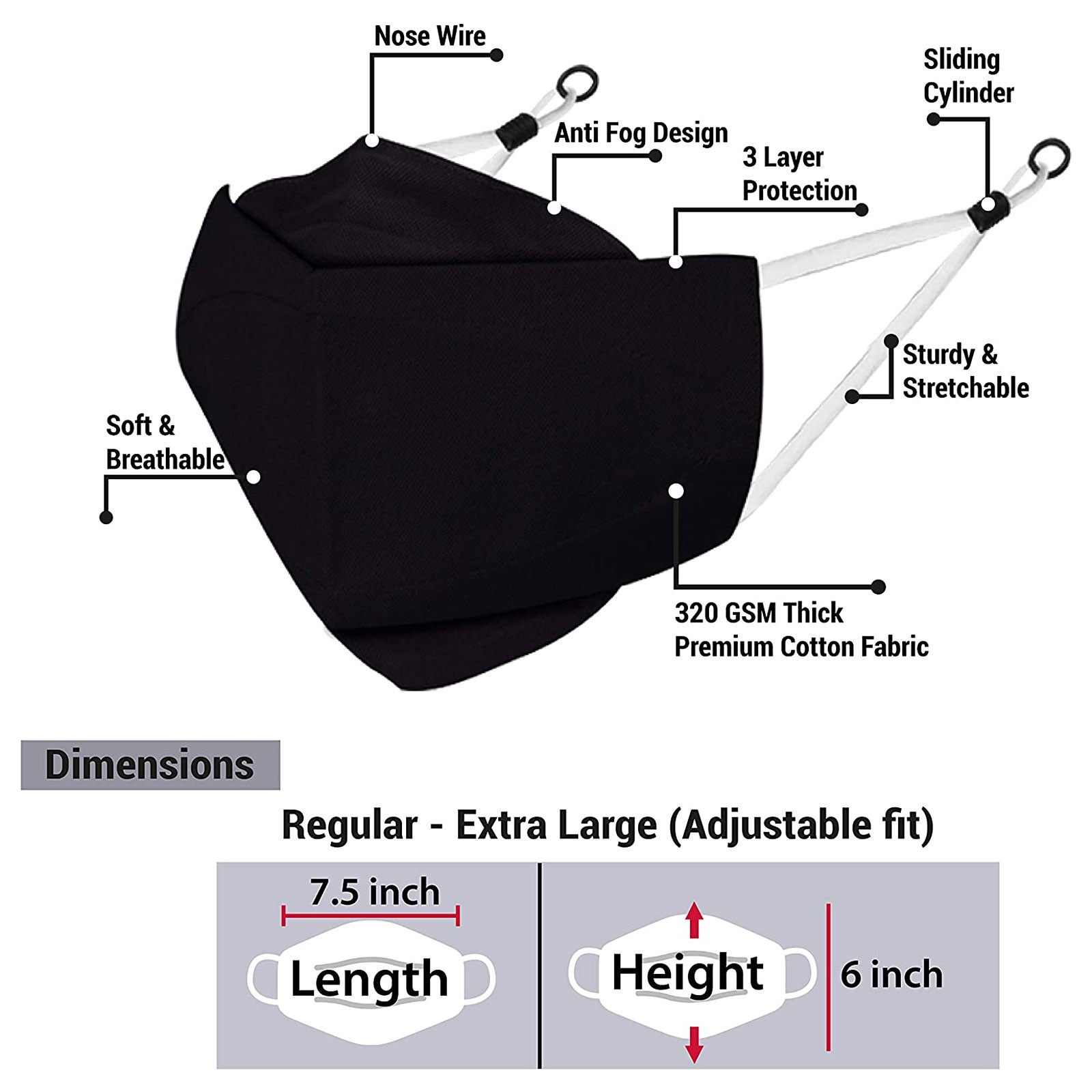 3 Тканевые маски для лица с проволокой для носа и регулируемыми петлями для ушей (3 шт. в упаковке)