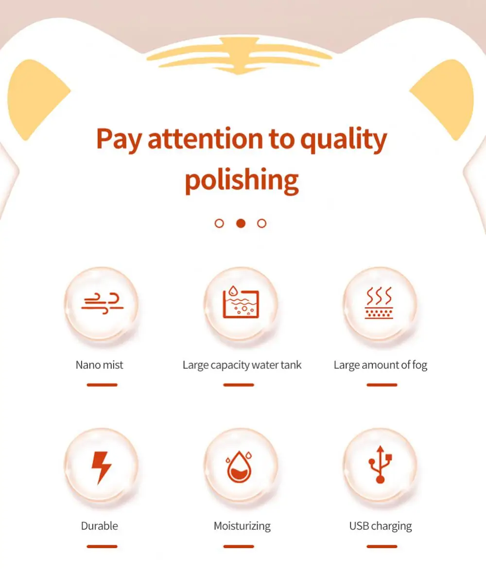 1.【Easy operation】 Turn on the switch to facilitate moisturizing at any angle.