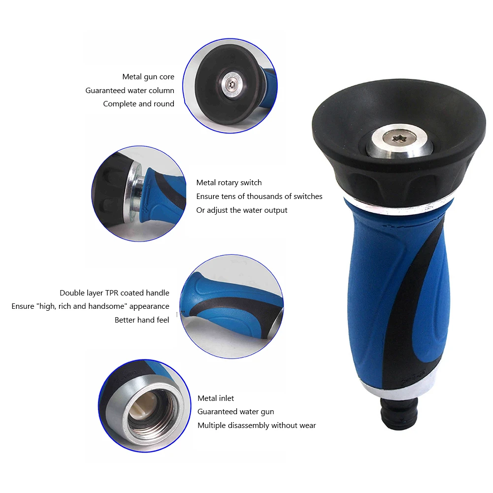 3. Сопло садового шланга имеет прямой дизайн, высокое давление воды и большое расстояние распыления.