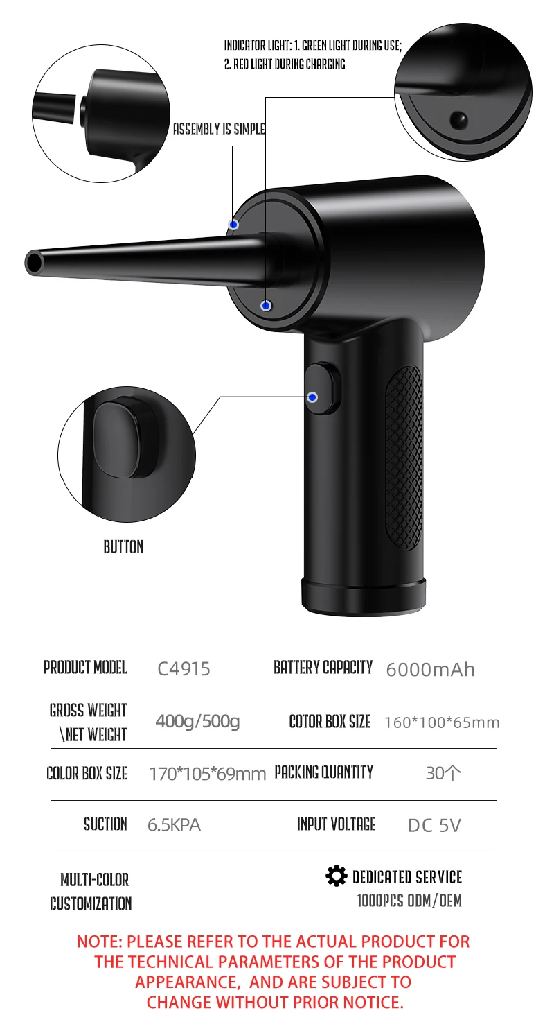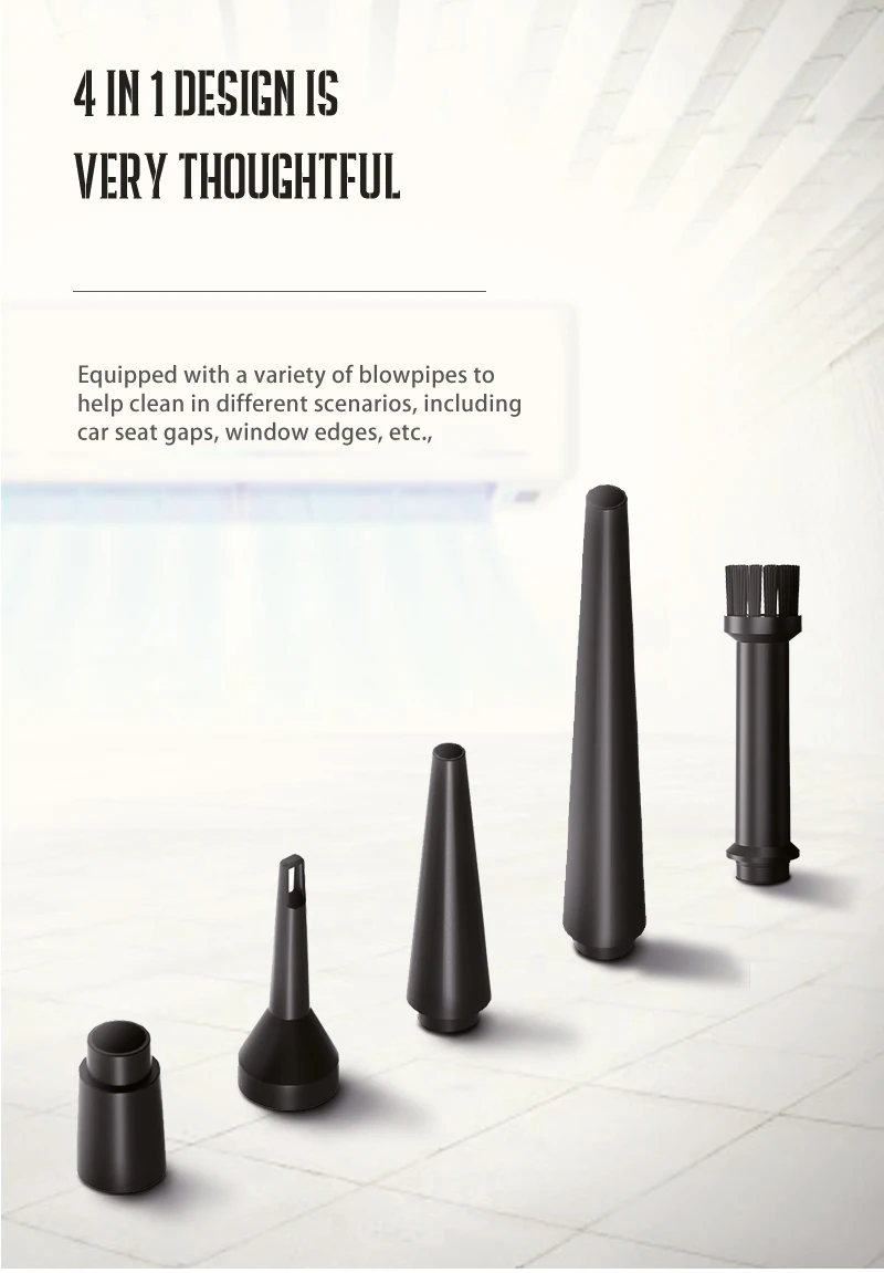 Скорость 51000rmp, air duster принимает бесщеточный двигатель нового поколения и мощность обновления. Это самая мощная воздуходувка на рынке, и она может легко выдувать пыль из любого места. Меньшее энергопотребление, длительный срок службы и снижение уровня шума, сохраняя при этом сильную мощность. Чистка станет приятной.