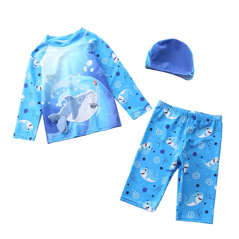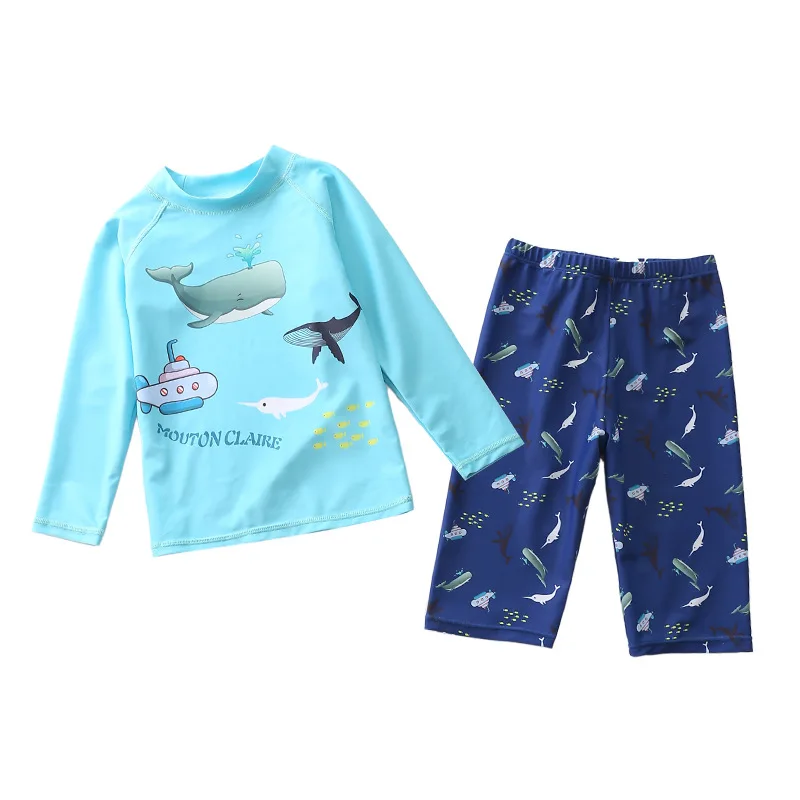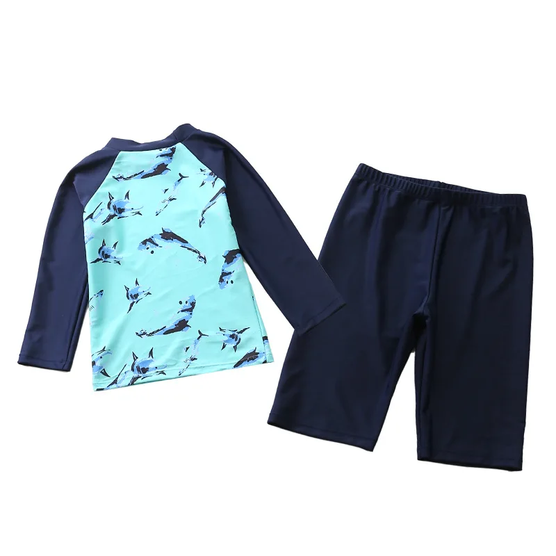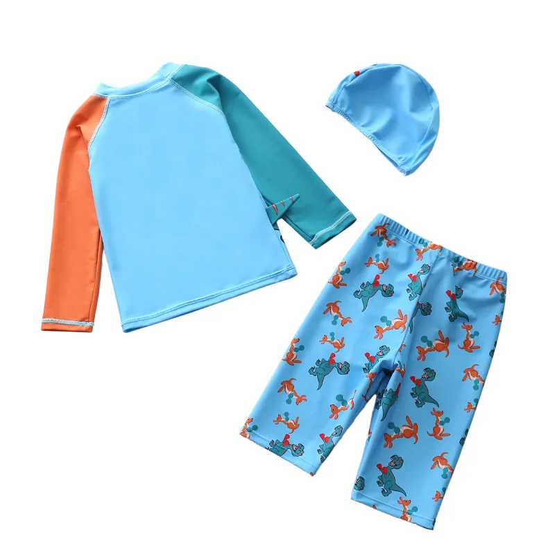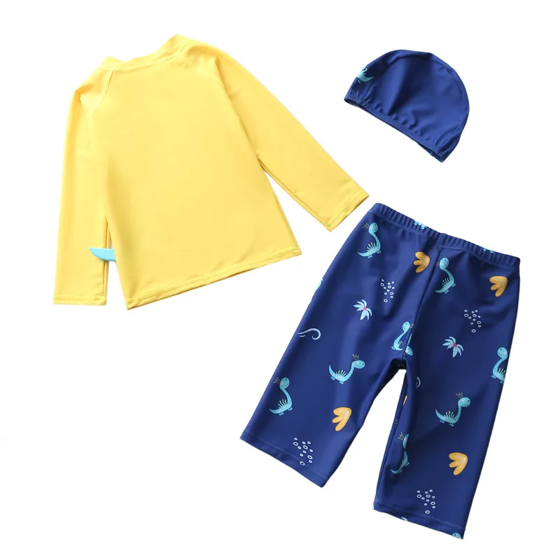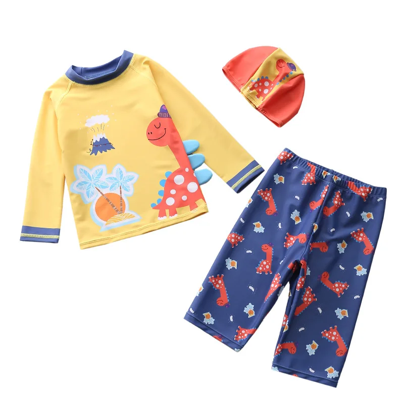 Children's Swimwear Dinosaur Print Toddler Bathing Suit Kids Anti-UV Long Sleeve Swimsuit Boy Beach Swimming Trunks 4-11 Years