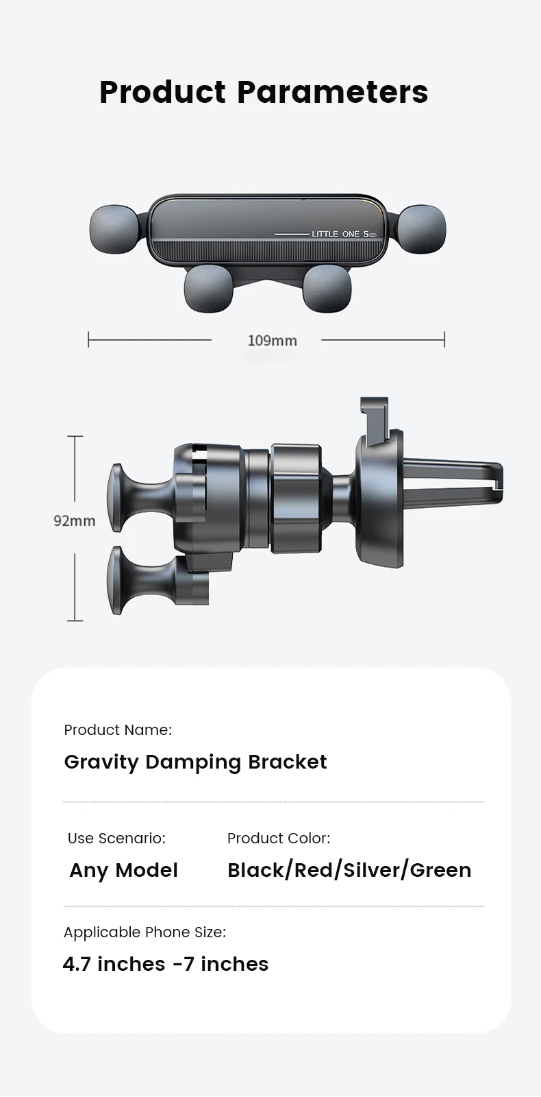 -Фиксированная и стабильная Изогнутая конструкция основания крепится к большинству автомобильных вентиляционных отверстий.