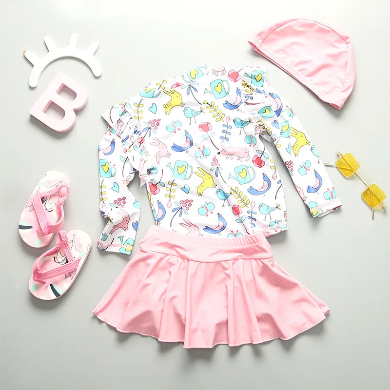 Купальный костюм с цветочным рисунком для девочек UPF50, защита от ультрафиолета, детский купальник с длинными рукавами, детские купальные костюмы, пляжная одежда для серфинга, Рашгард