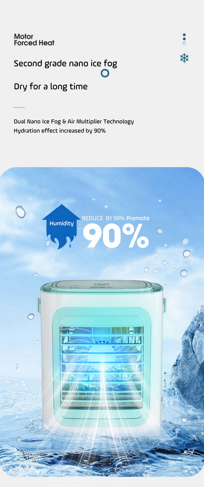 2: технология двойного нано-распыления льда и мультипликатора воздуха увеличивает эффект гидратации на 90%