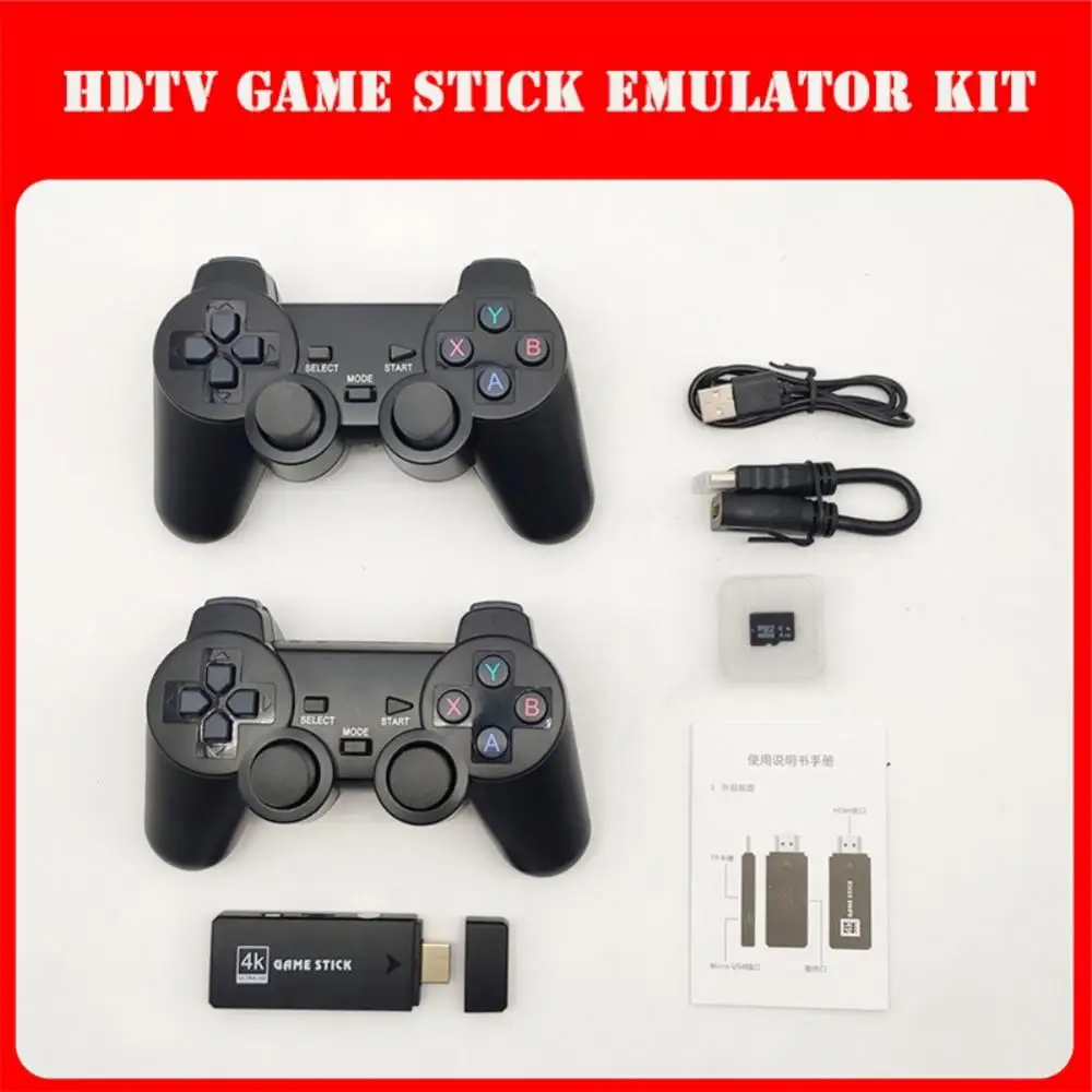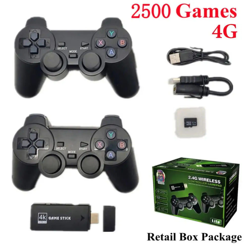 -2,4G двойной беспроводной контроллер геймпада: Эта игровая консоль имеет два беспроводных геймпада, простой и удобный, вы можете испытать удовольствие от игры с друзьями, партнерами и детьми