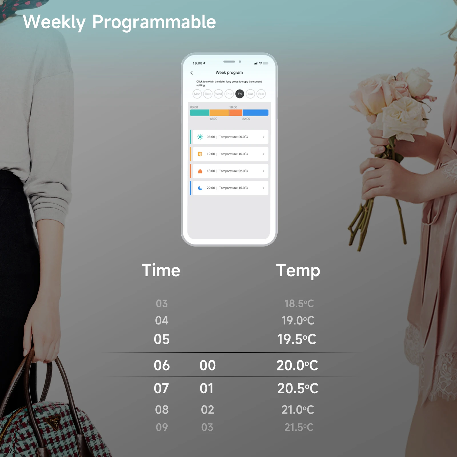 3.Programmable Schedule with Weekly Programming Selection: