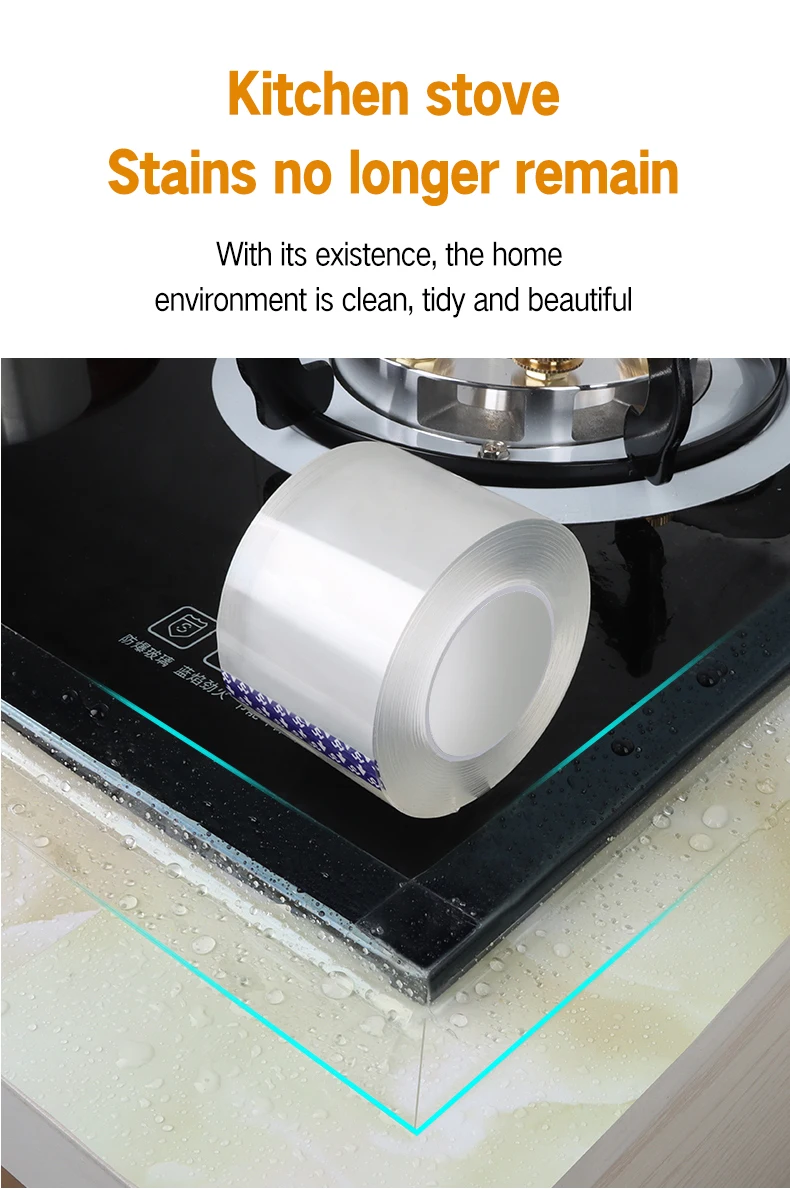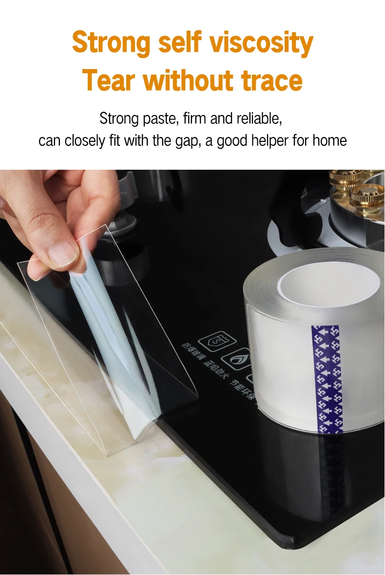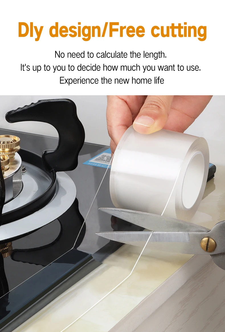 【Многофункциональная односторонняя лента 】 универсальная прозрачная нано-лента, подходит для объектов любой формы. Широко используется для уплотнения соединений газовых печей, раковин, умывальников, ванн и стен для предотвращения плесени
