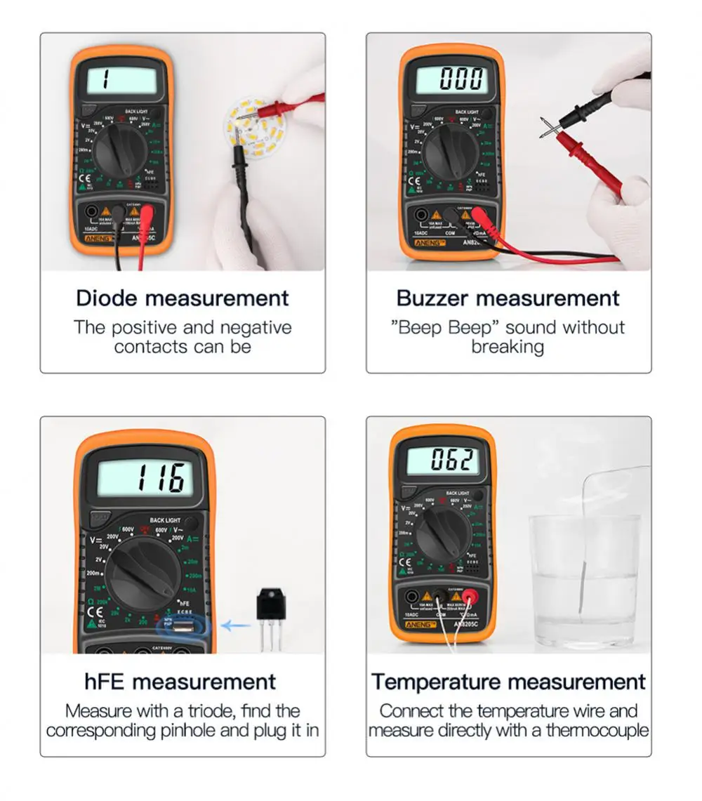 ANENG AN8205C цифровой мультиметр AC/DC Амперметр Вольт Ом тестер Измеритель портативный Multimetro с термопарой ЖК-подсветкой