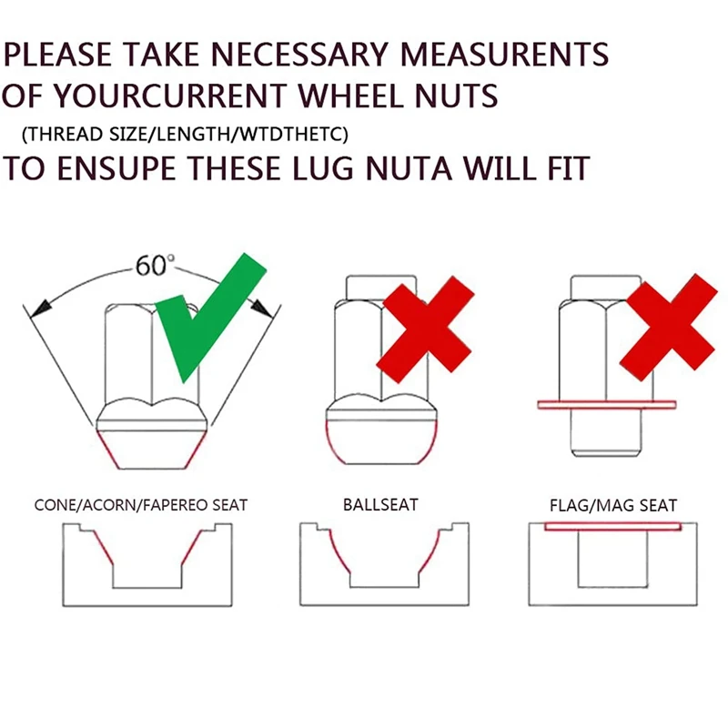 M12x1.25 применимые модели: M12x1.25 совместимы с Nissan, Subaru, Suzuki, KOLEAO. Для других моделей, не перечисленных, пожалуйста, подтвердите характеристики гайки перед покупкой.