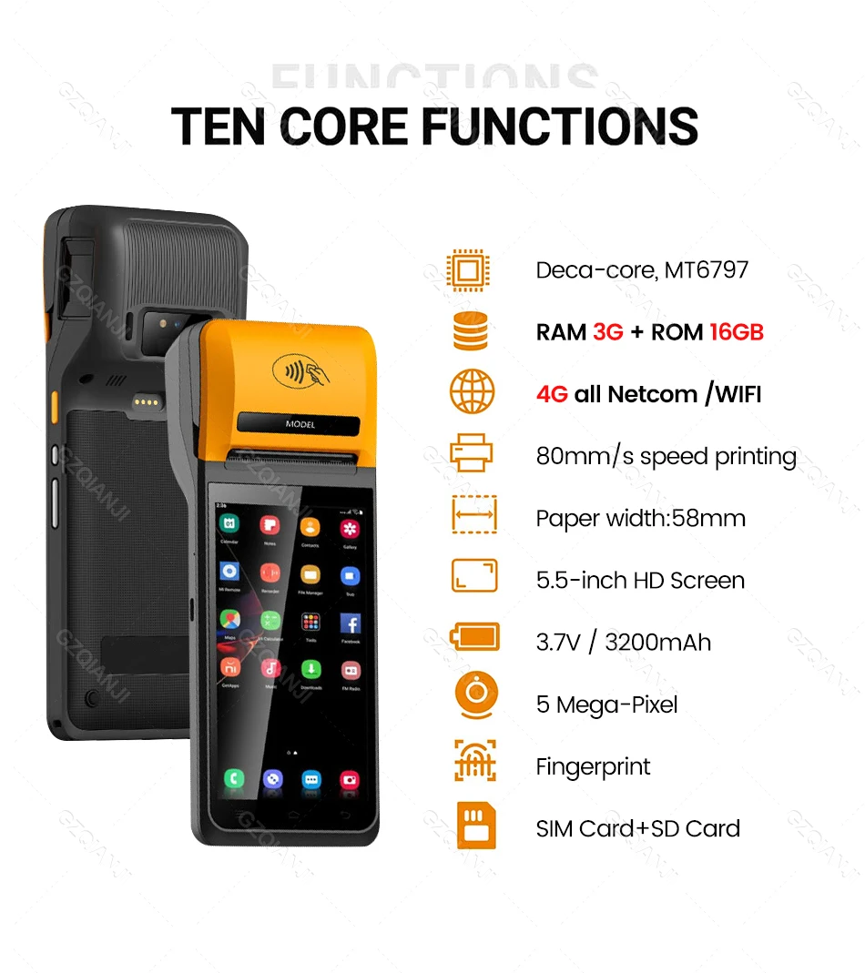 5.5 inch Wireless Portable All in one Handheld PDA Printer Smart POS Terminal