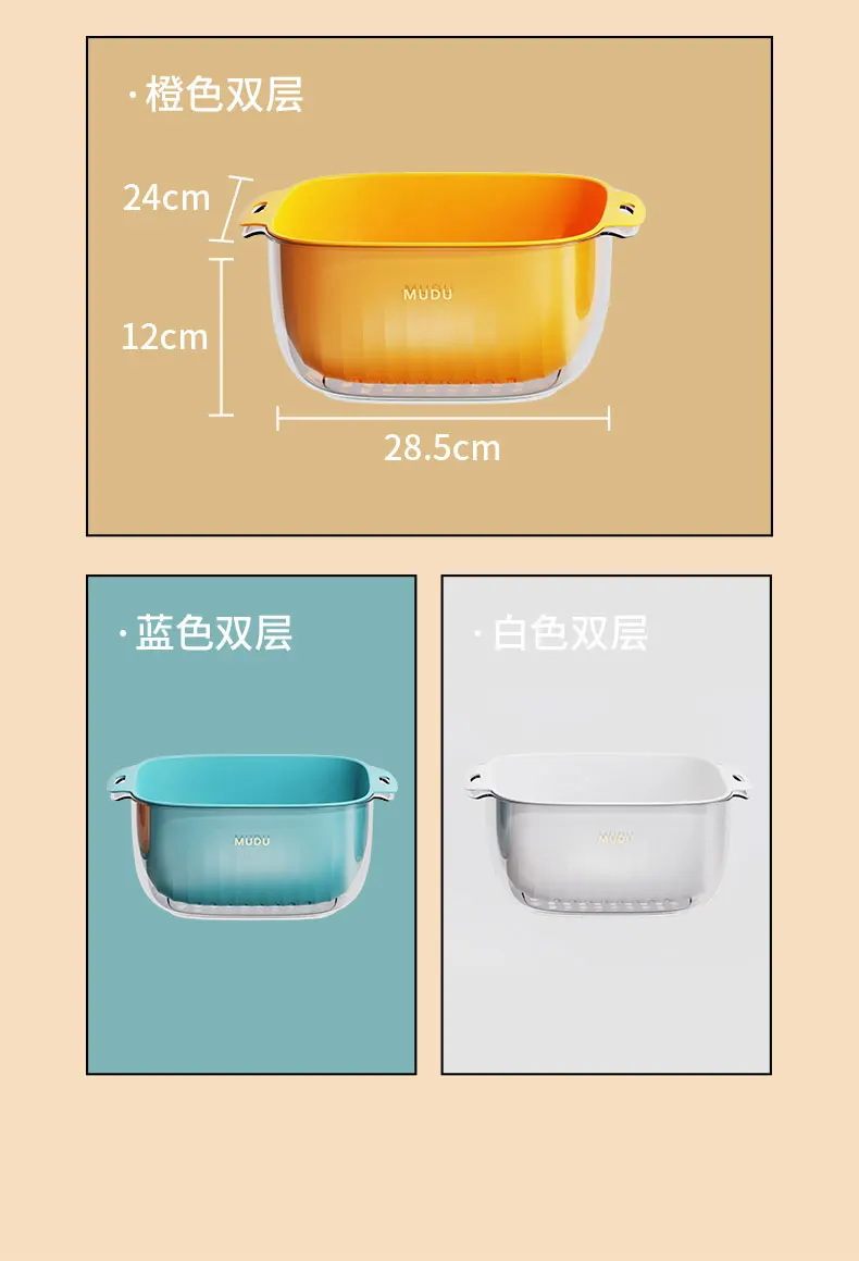 5. Углубить и увеличить емкость, может удовлетворить ежедневные потребности: все виды фруктов и овощей легко мыть, слив/Хранение корзина может быть сделано.