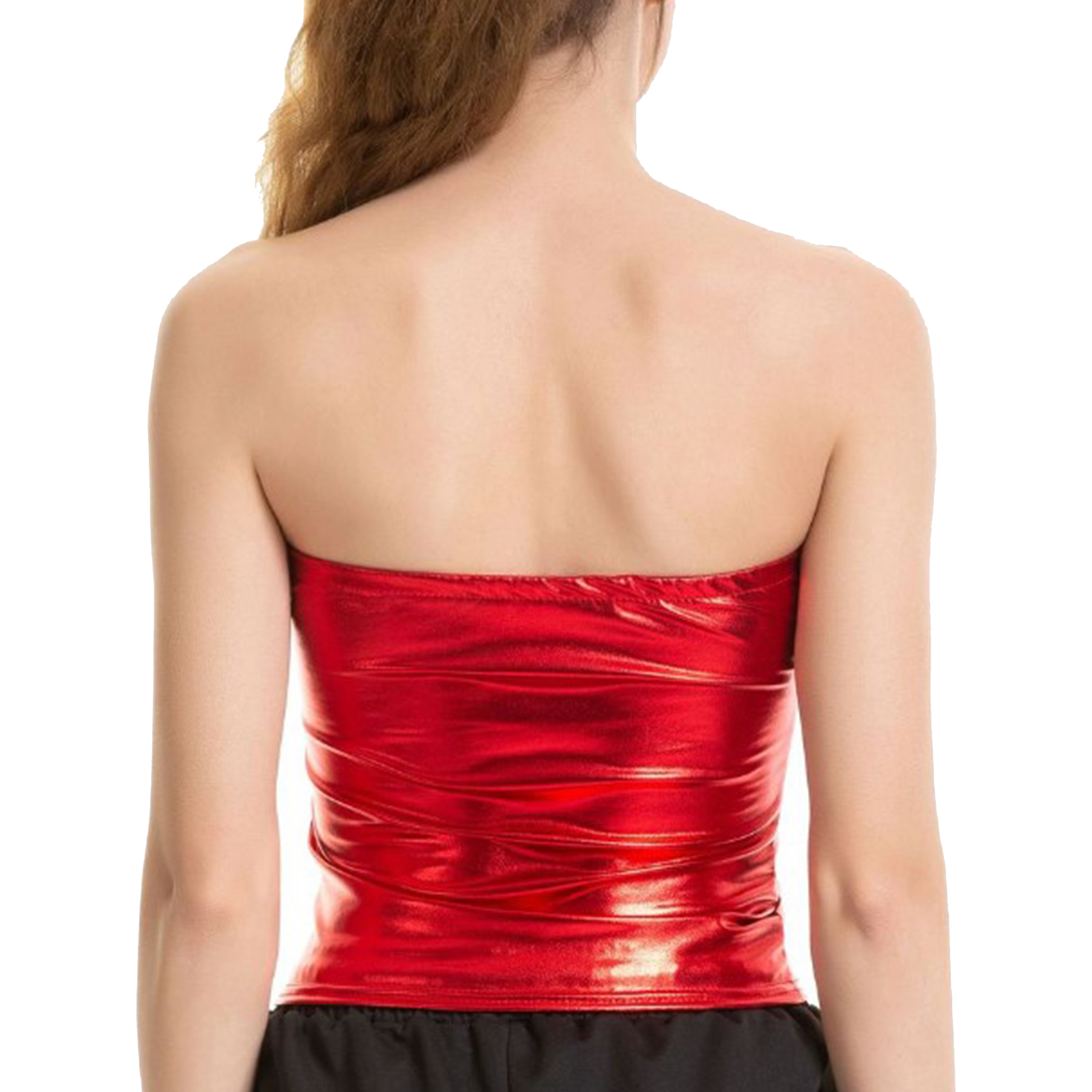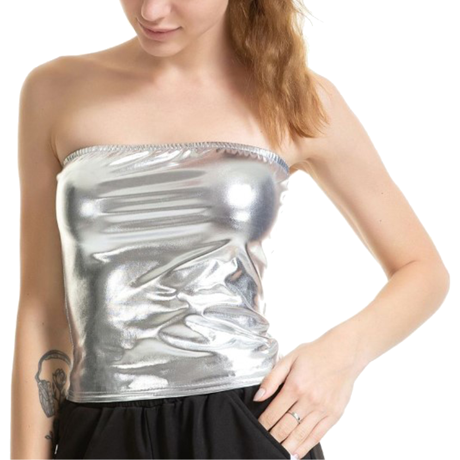 Блестящий внешний вид, сплошной цвет, без бретелек, облегающий топ-труба.