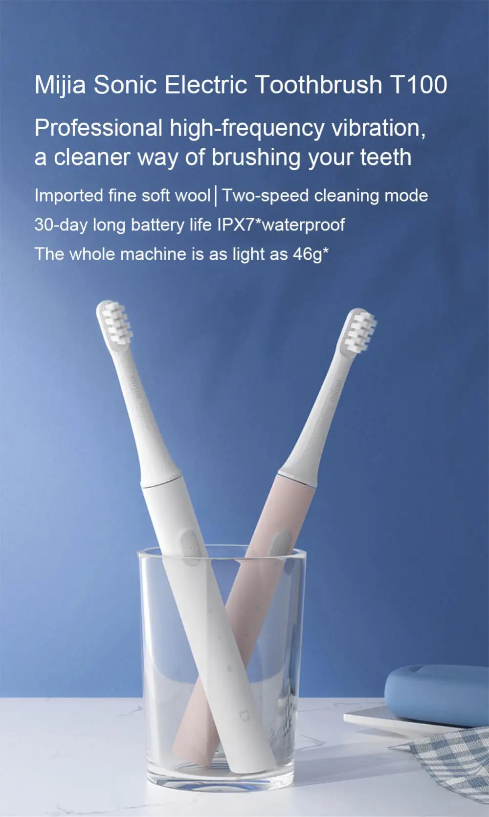 Xiaomi Mijia T100 звуковая электрическая зубная щетка Mi умная зубная щетка цветная USB перезаряжаемая IPX7 Водонепроницаемая Mijia умный дом