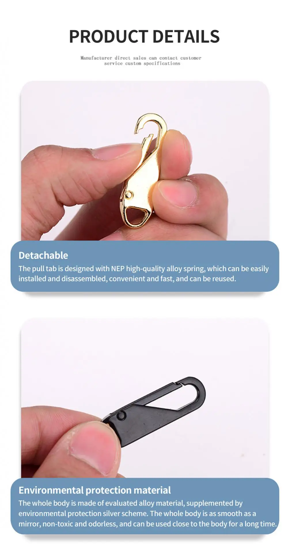 Эта пружинная тяга может быть применена к молниям различных продуктов в жизни, подходит для различных самоблокирующихся, не самоблокирующихся, полуавтоматических локомотивов, стволов слона и т. Д., багажа, различные рюкзаки, небольшие клатчи, куртки, маленькие пальто, ботинки и т. Д.