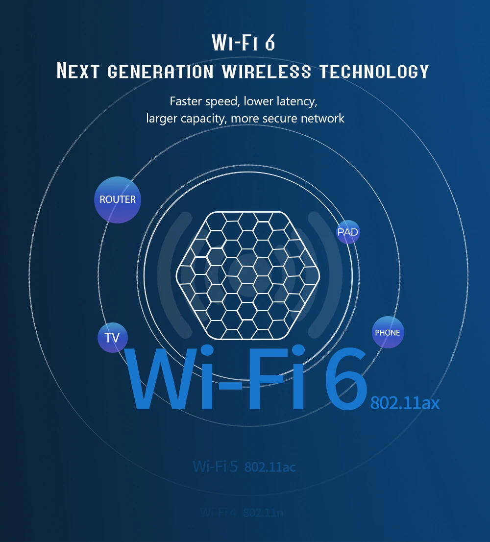 Build встроенный wifi 2,4G/5G двойной бренд WIFI 6 (более сильный сигнал)