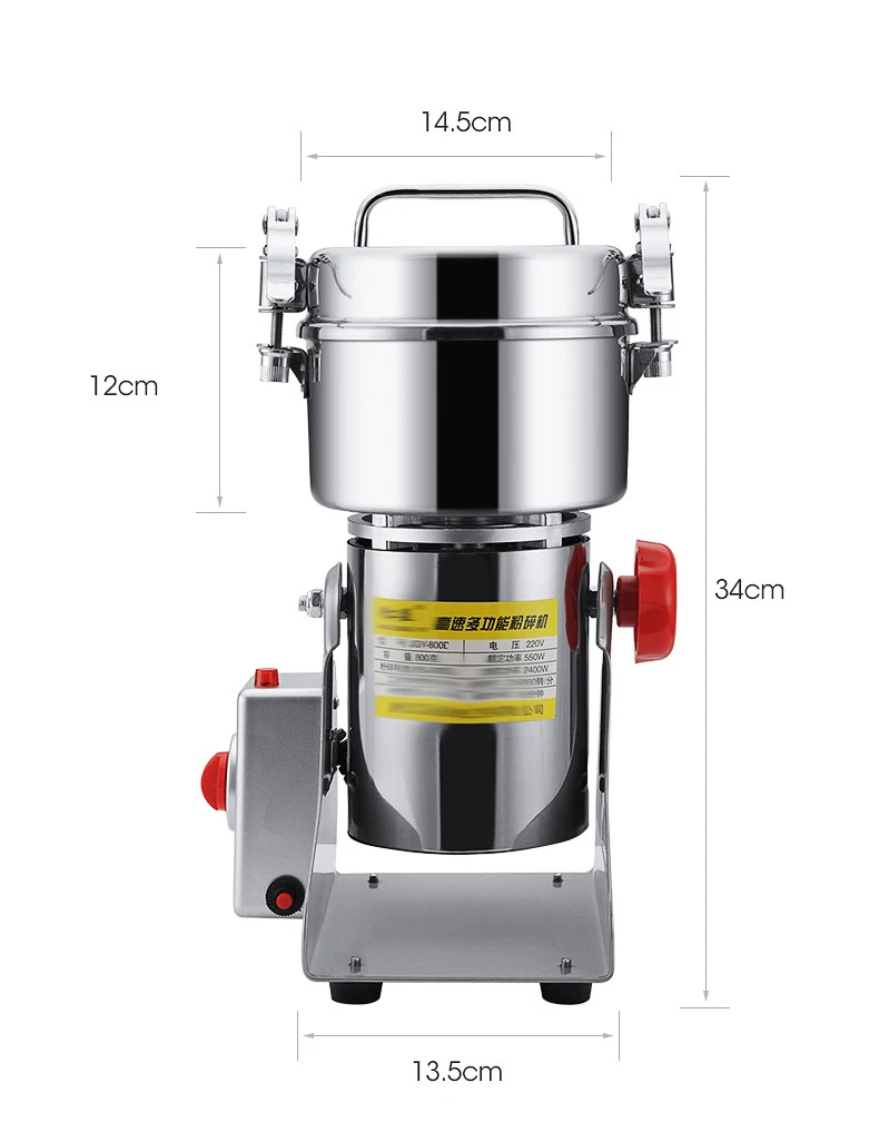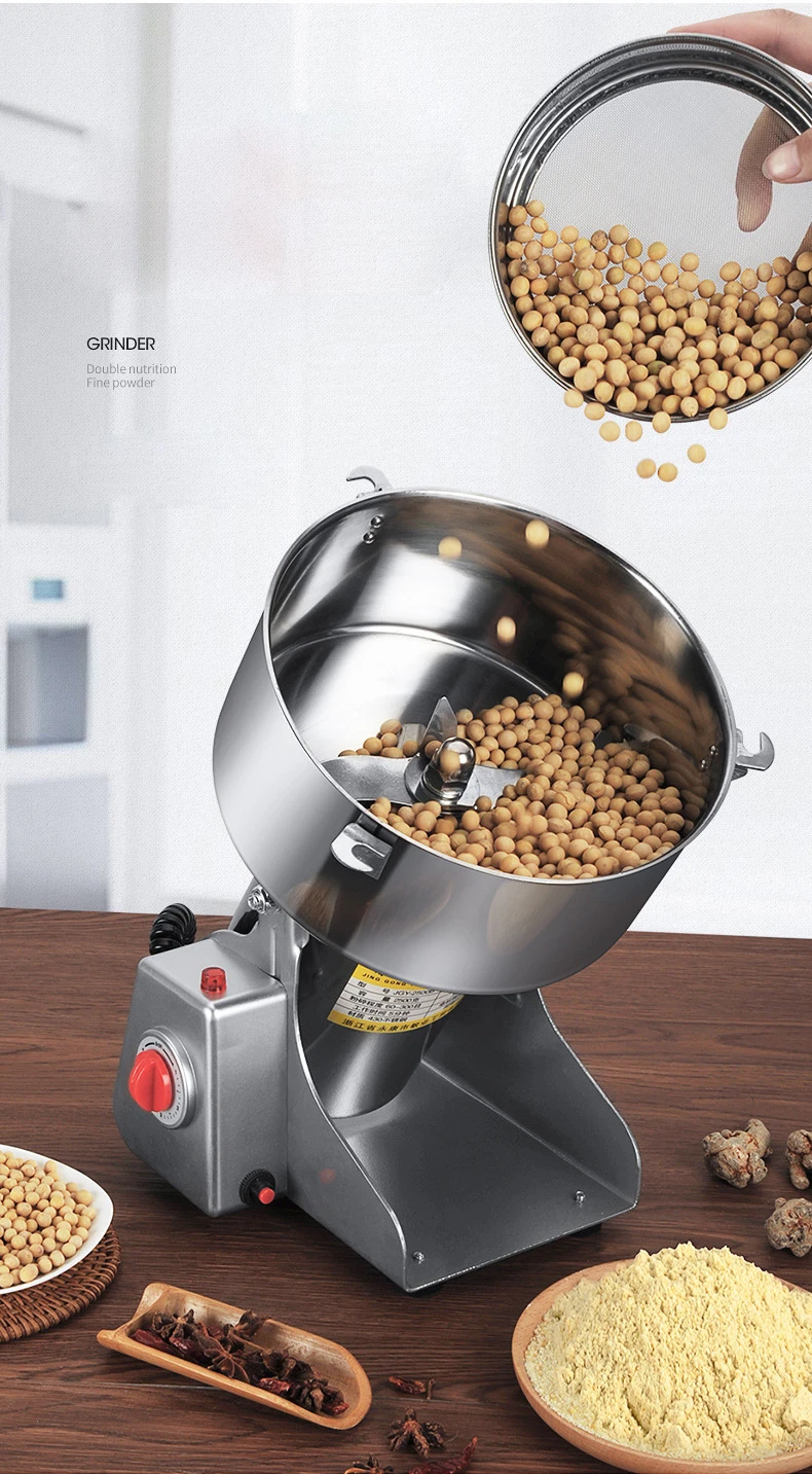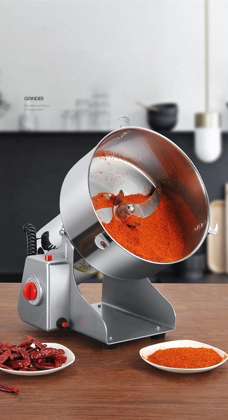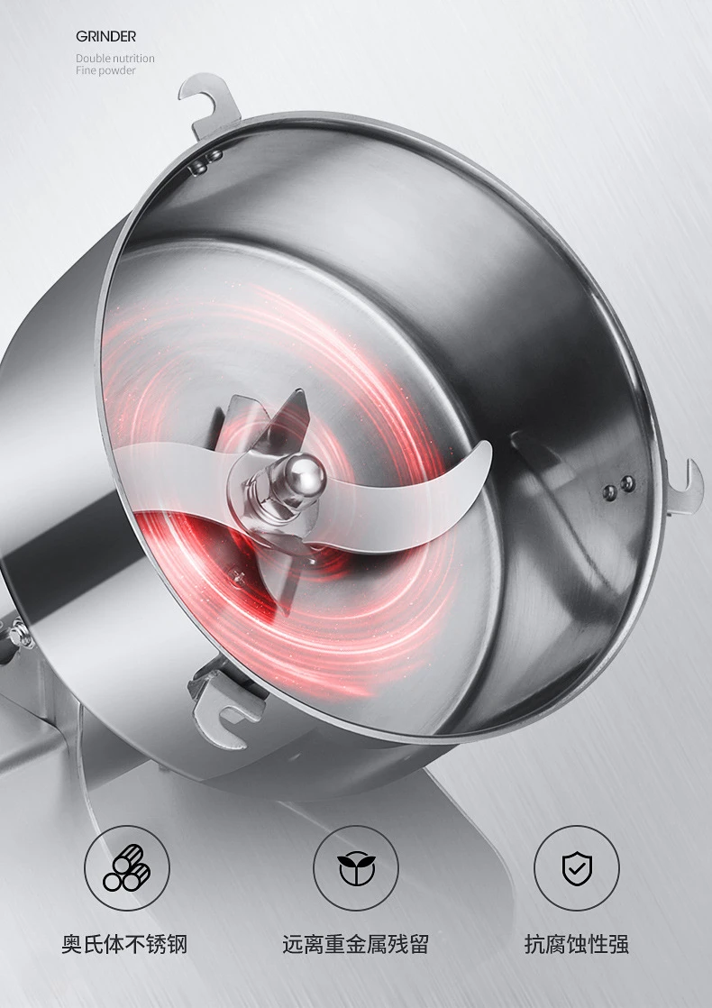 Если вы хотите Измельчить влажный материал, сначала высушите его. Обратите внимание, что эта шлифовальная машина не может измельчать влажные или липкие предметы, такие как мясо, фрукты, свежие овощи, сахар.