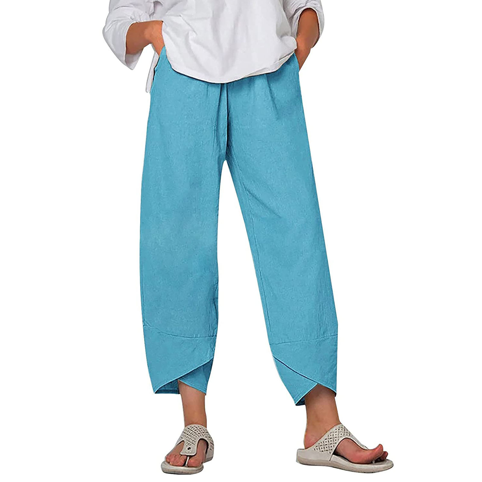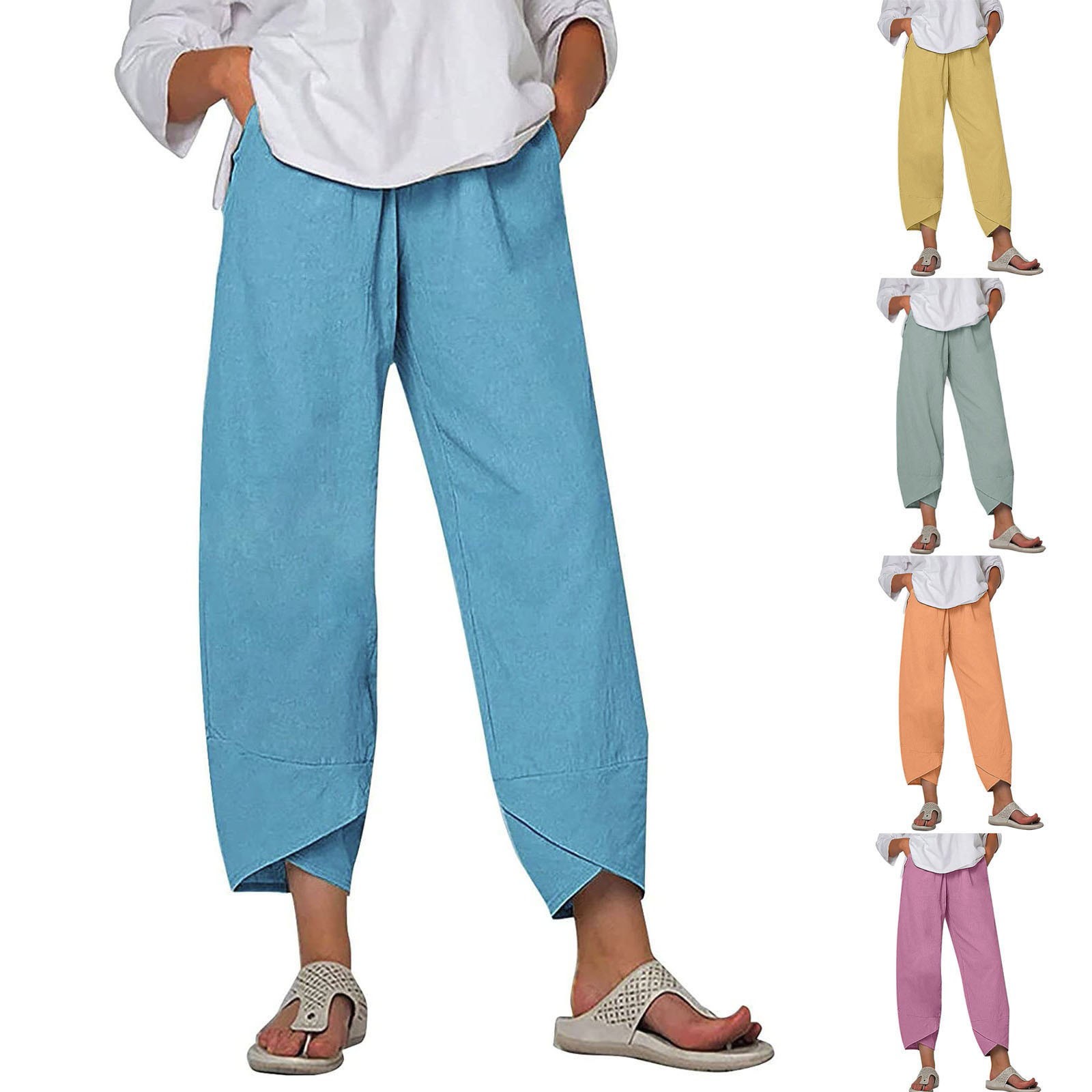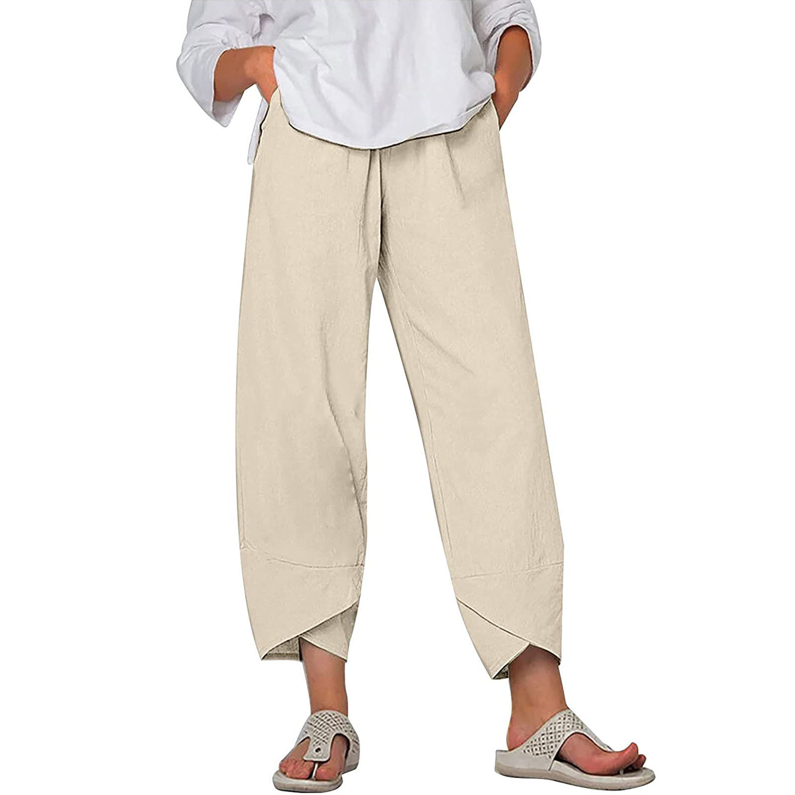 Женские Летние повседневные свободные хлопковые и льняные широкие брюки с вышивкой