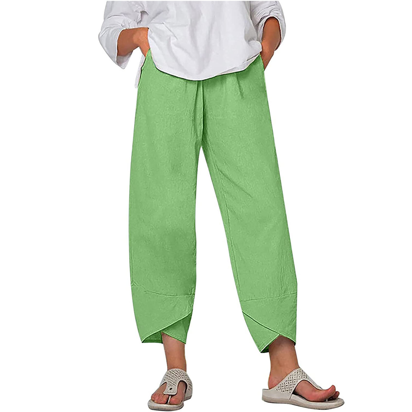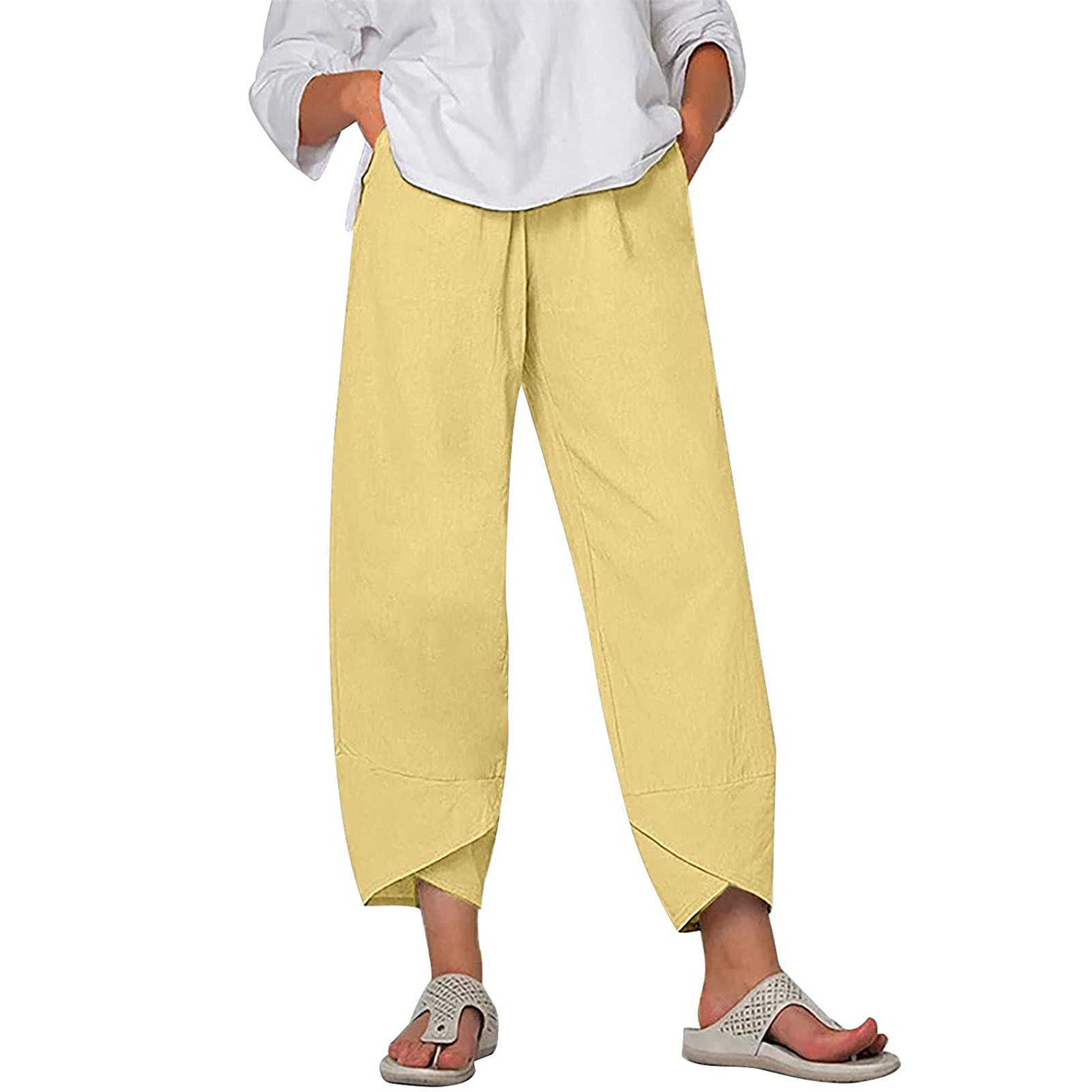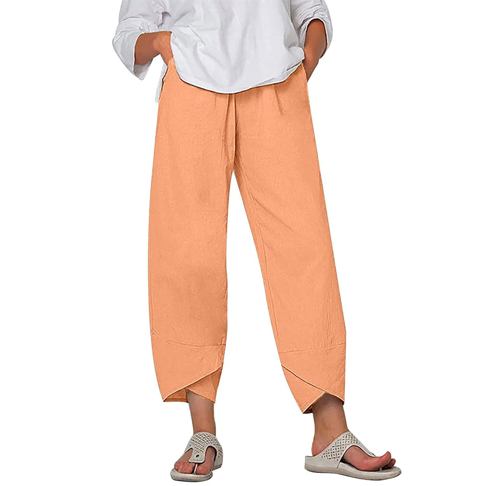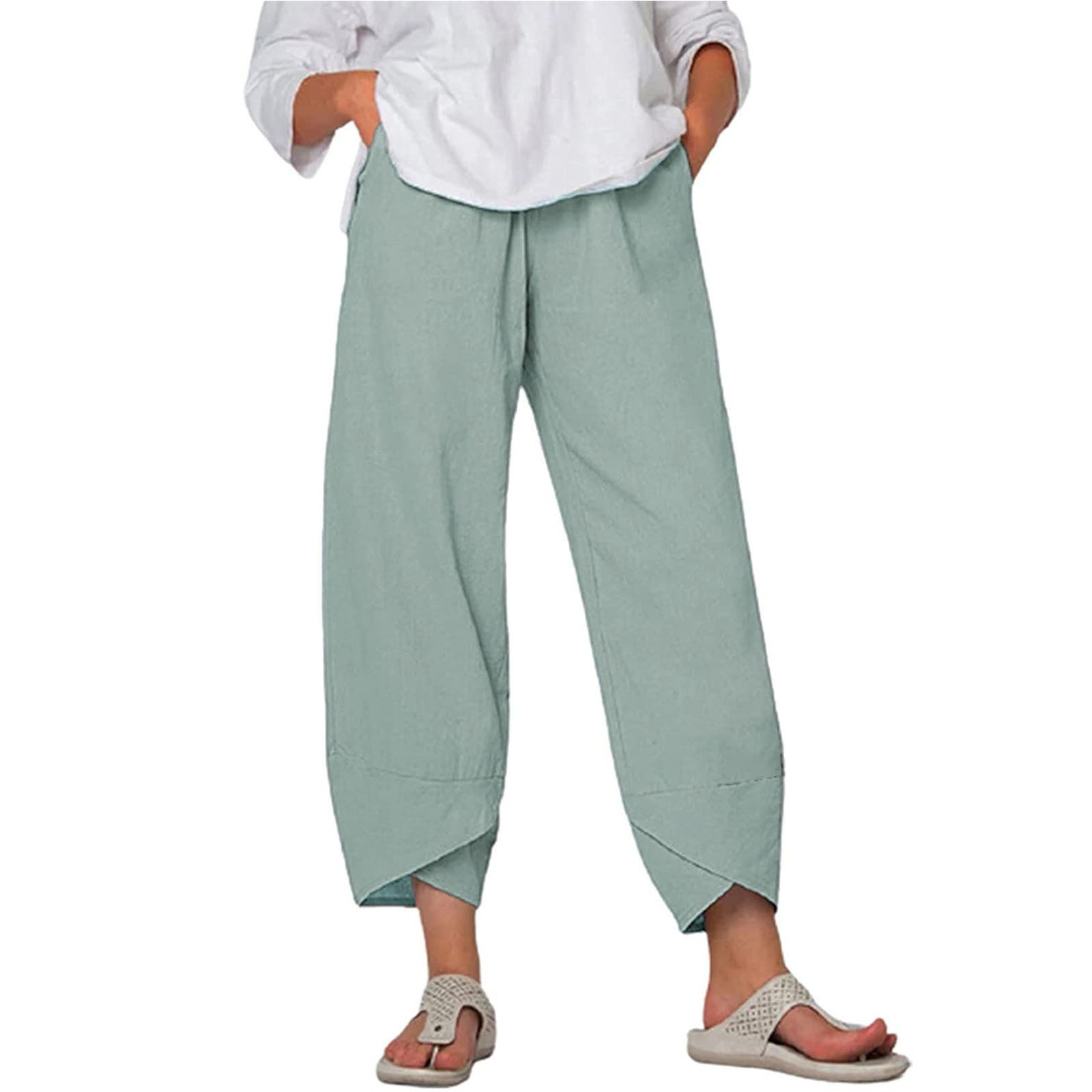 Женские Летние повседневные свободные хлопковые и льняные широкие брюки с вышивкой