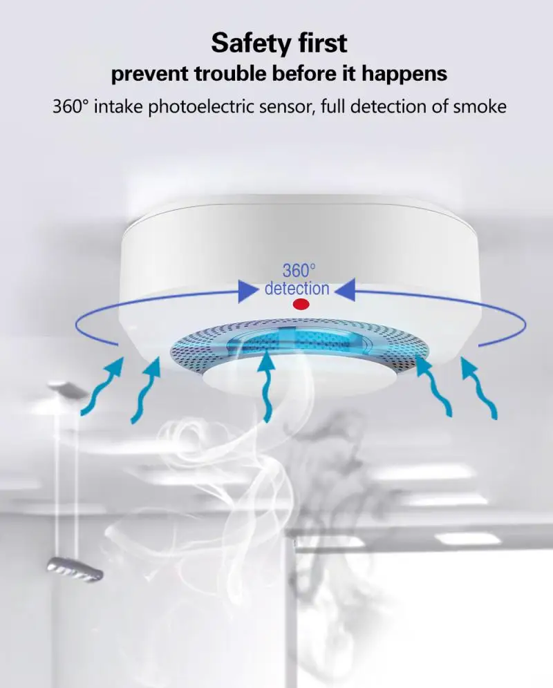 3. 【Низкое энергопотребление 】этот детектор дыма разработан с низким напряжением и faultprompt функцией и предупредит при низкой мощности, с функцией самостоятельного тестирования.