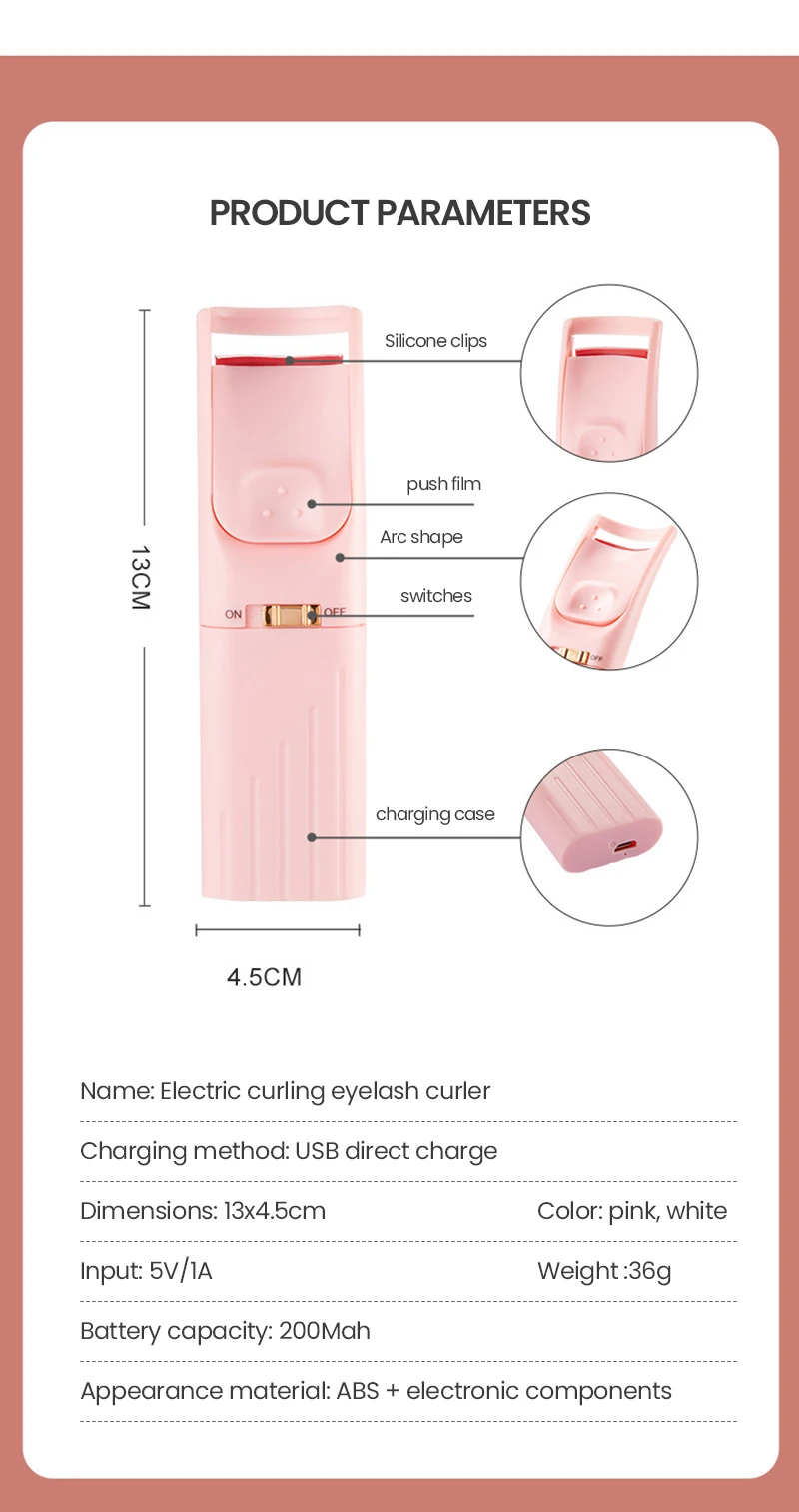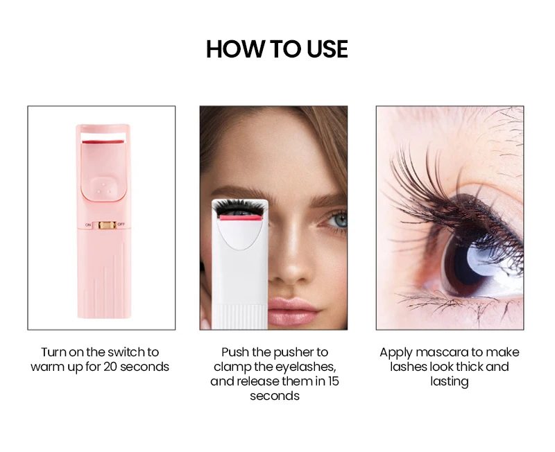 1. 【Легко использовать 】 с помощью электрического бигуди для ресниц, вы можете скручивать ресницы одним зажимом, что удобно и быстро использовать