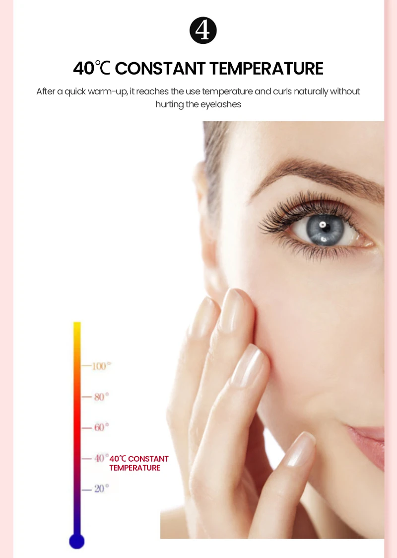 3. 【Не повреждает ушко 】 после быстрого предварительного нагрева, он будет скручиваться естественным образом, когда достигнет рабочей температуры, не повреждая ресницы
