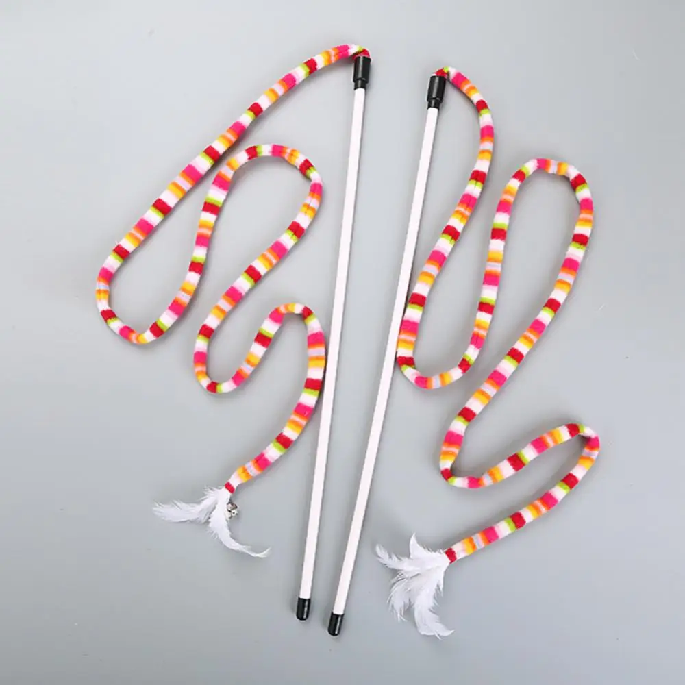 Кошачья интерактивная игрушка Радужная форма змеи забавная голова кошки палка с кольцом коробка Радужная ткань Прорезыватель для котенка кошки игрушки товары для домашних животных