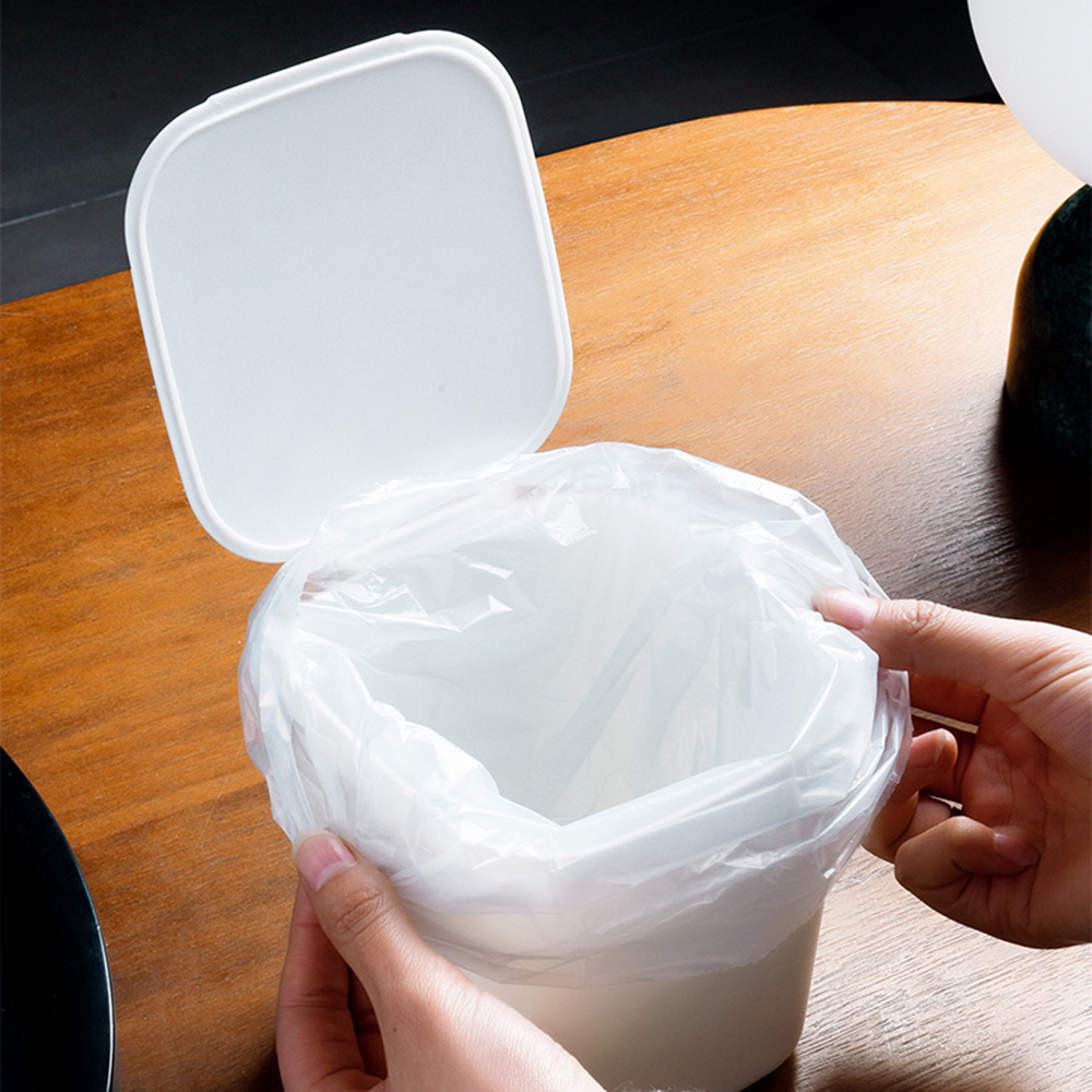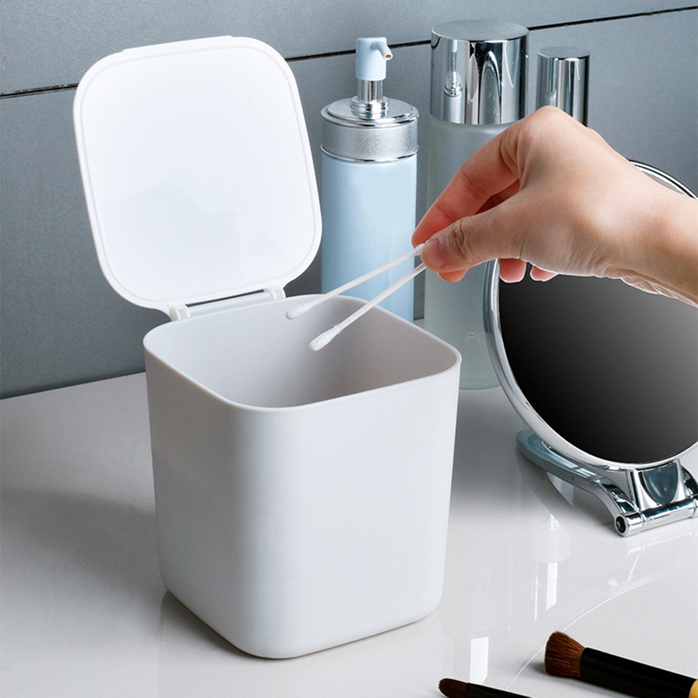 Контейнер: стильный и компактный настольный мусорный бак-это идеальный контейнер для выкидывания губки для макияжа, косметических аппликаторов, тканей, хлопка, легко пустой ящик с крышкой и широким отверстием.