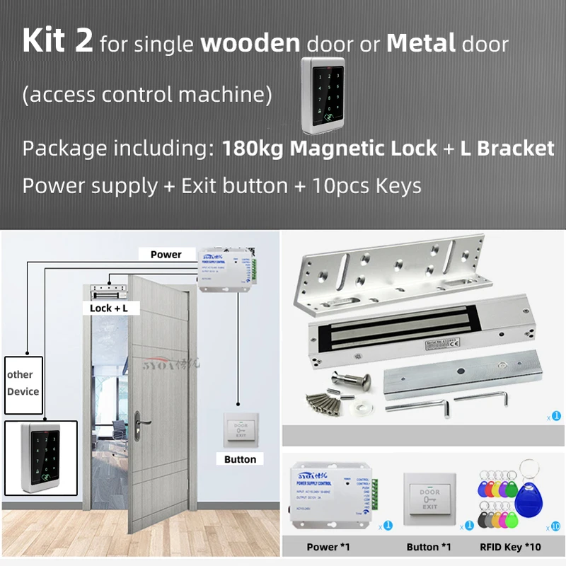 Используйте магнитную силу для блокировки двери, 180 кг (350 фунтов) удерживающая сила (может добавить плату для обновления до 280 кг 350 кг 500 кг и т. д.).
