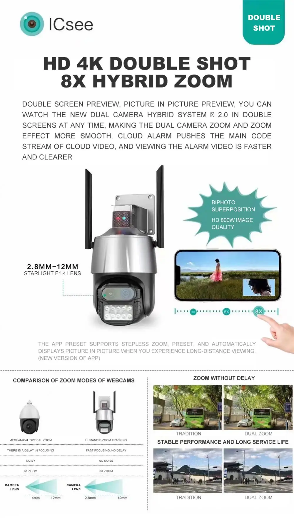 Двойной объектив 2,8 мм 12 мм для видимости на большом расстоянии.