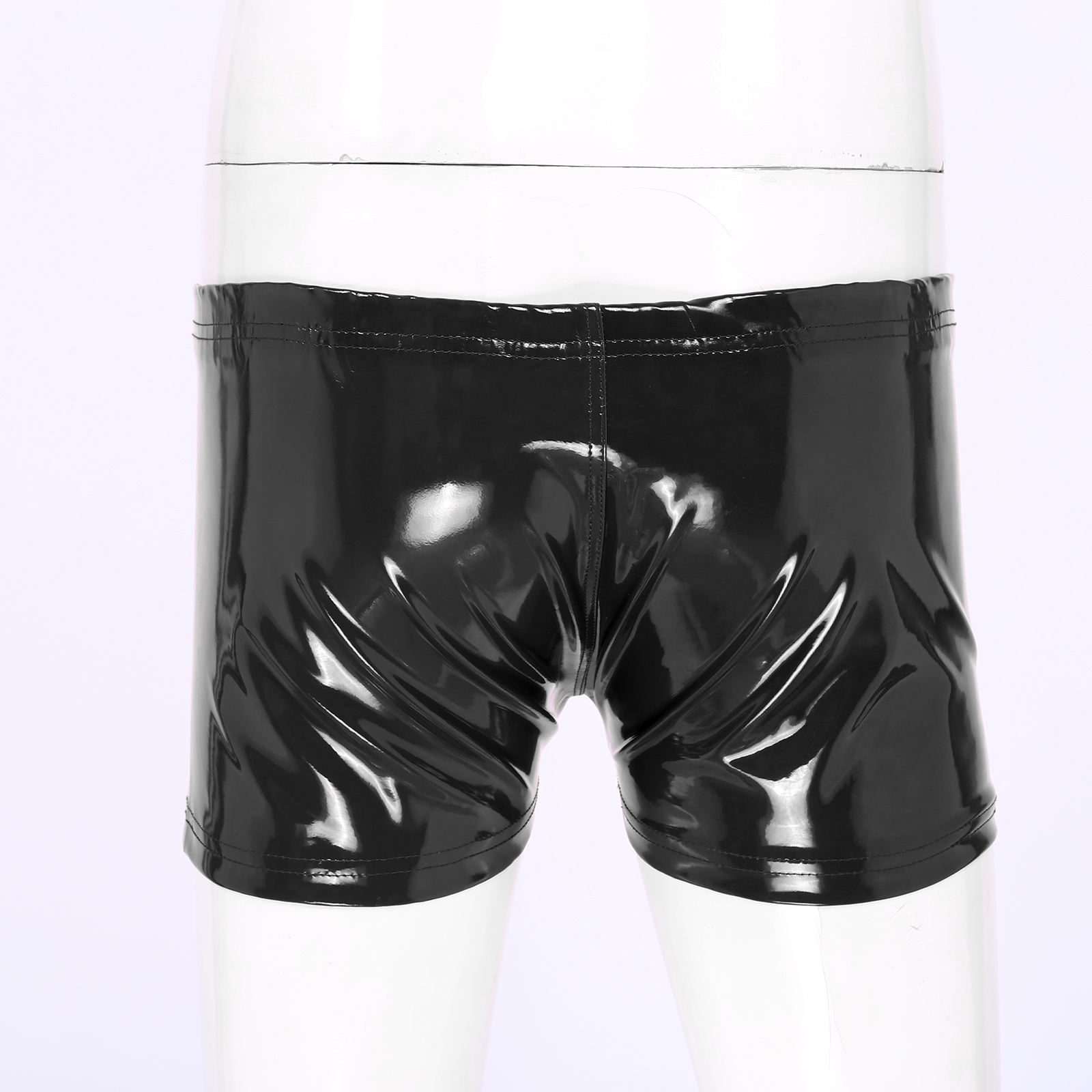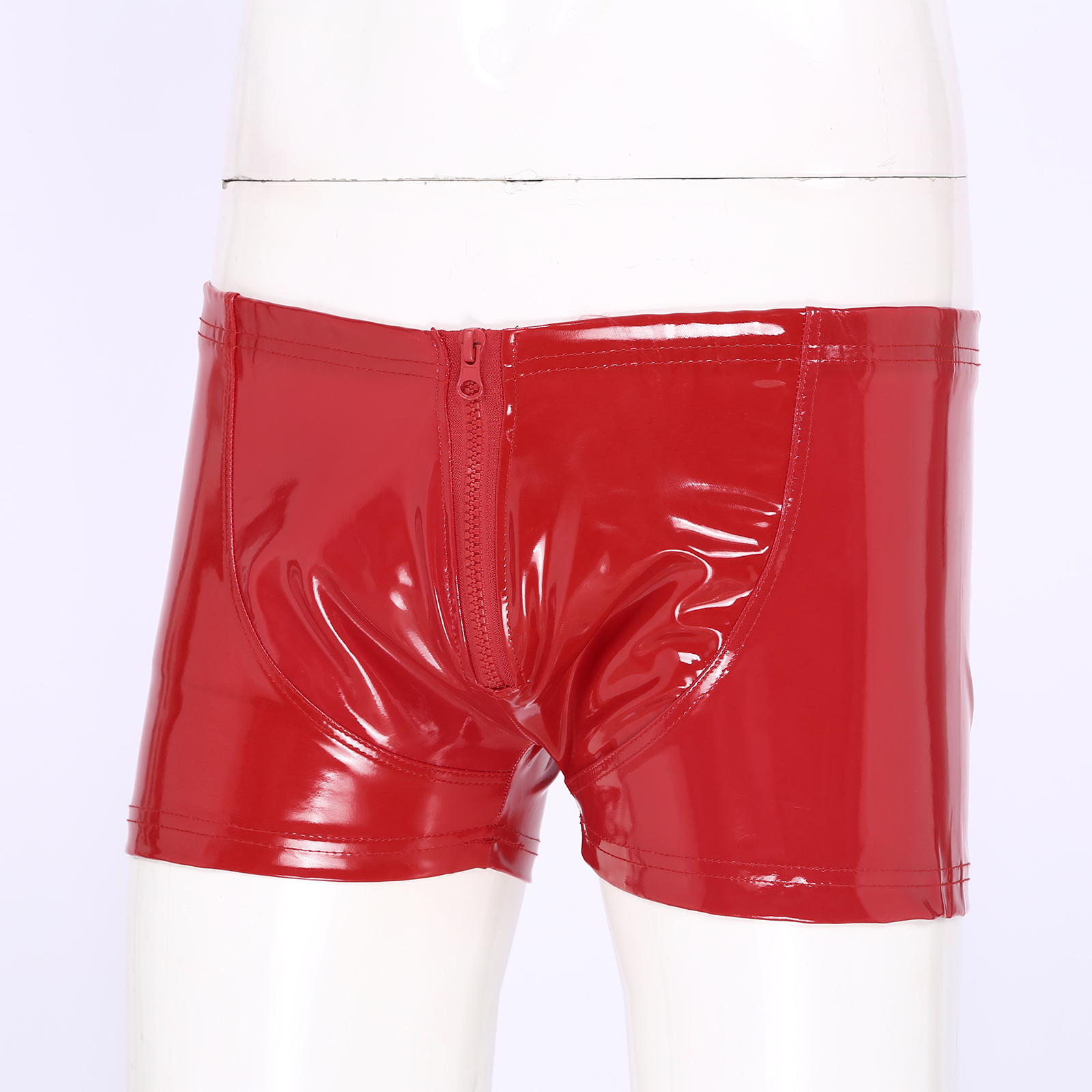 Мужские шорты из лакированной кожи на молнии спереди, Короткие трусы-боксеры.