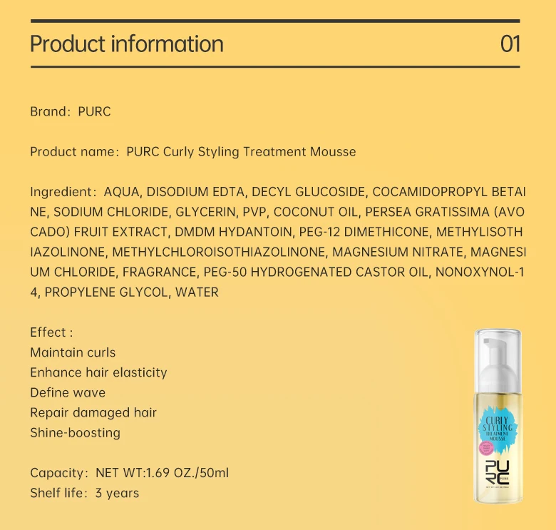 Кудрявые волосы заслуживают хорошего ухода. Определение волн и улучшение локонов с помощью этого стильного Мусса просто непосредственно сохраняет Пенящийся мусс равномерно на волосах. Высококачественный эластин способствует упрочнению локонов и эластичности волос, предотвращая постепенное выпрямление вьющихся волос после укладки. Кокосовое масло обеспечивает богатые питательные вещества для волос, поврежденных тепловыми инструментами для укладки, для улучшения завивки и сломанных волос, делая волосы глянцевыми и гладкими.