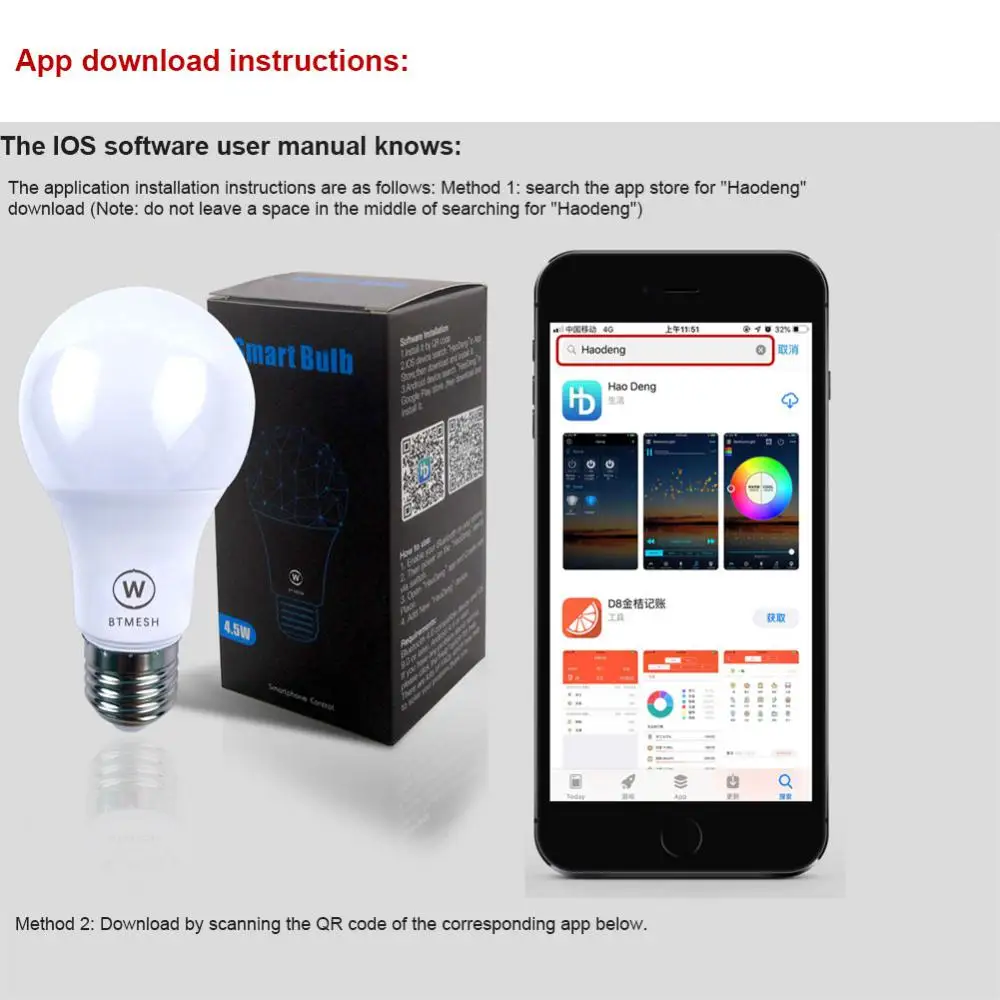 Беспроводная смарт-лампа с Bluetooth Hao Deng, приложение, управление регулируемой яркостью, лампа для изменения цвета, для бара отеля, украшения для спальни, для Xiaomi IOS/Android