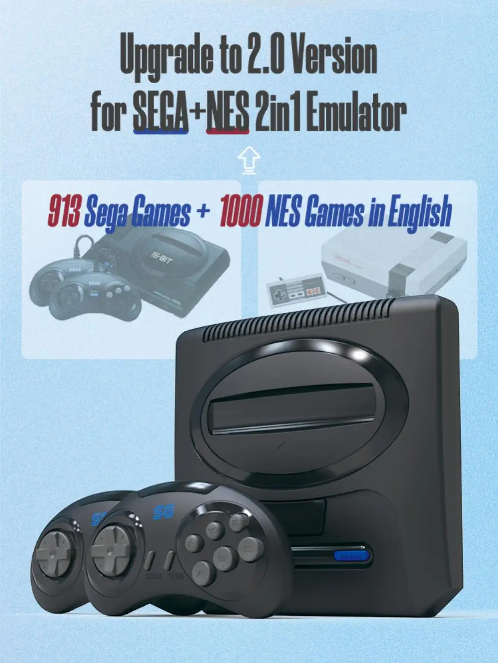 Эта ретро-ТВ-игра 4k для Gega-это обновленный дизайн до версии 2,0, для эмулятора SEGA NES 2в1. При включении телевизора выберите режим выхода с поддержкой HDMI (не режим AV). Подключи и работай! Эта игровая консоль предварительно установлена с 913 играми и 1000 играми на английском языке (русская игра зависит от вариантов покупки), с приключениями, боями, пазлами, инструментами, стрельбой, спортом и т. д. Выберите игру, в которую вы хотите играть!