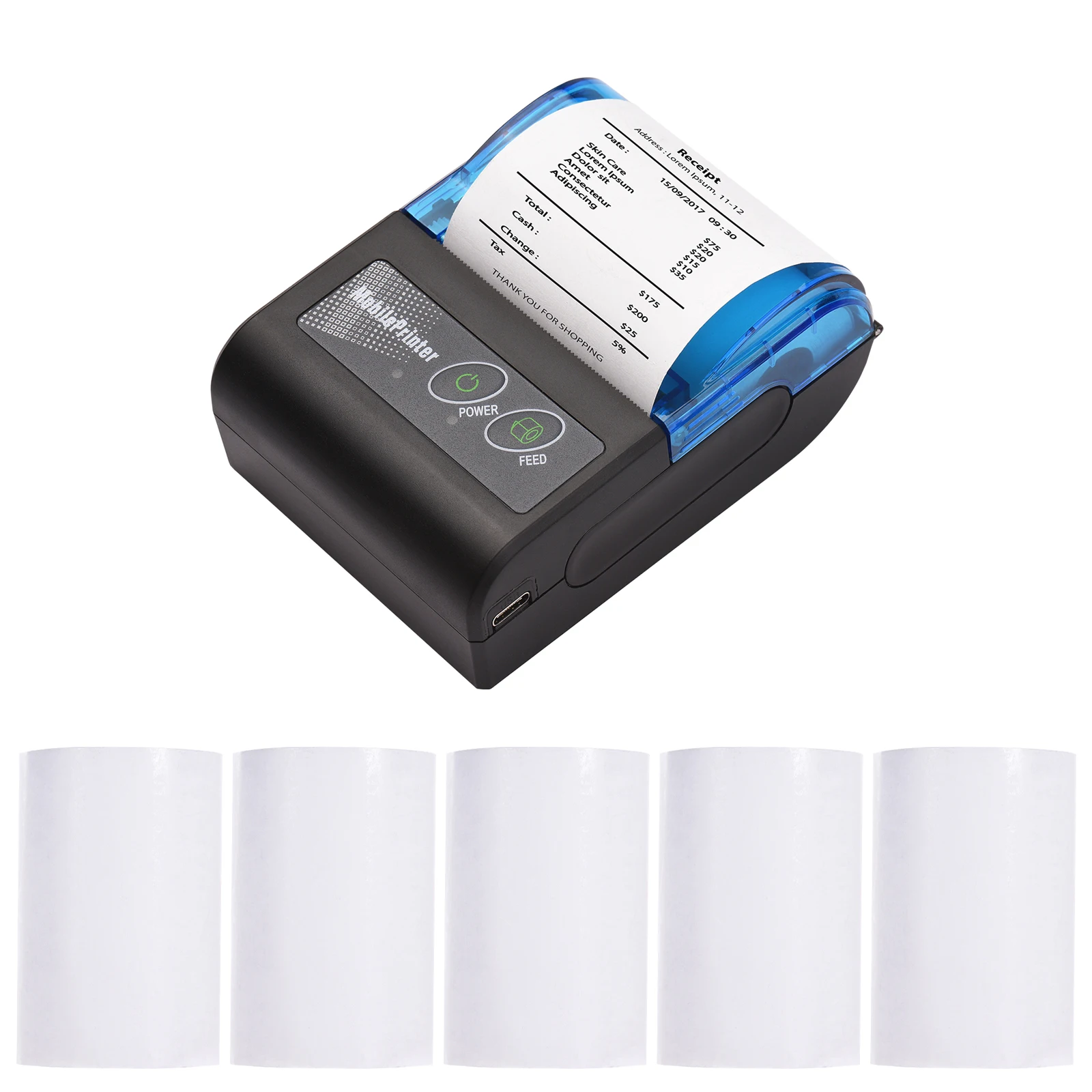4. Встроенный литий-ионный аккумулятор большой емкости 1500 мАч, печать квитанций в любое время. Портативный и легкий, легко носить с собой, он не занимает много места.