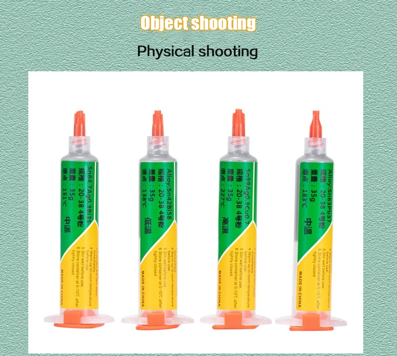 Применимо: тонкая паяльная паста, подходит для посадки олова BGA, пайки чипов, ремонт на мобильный телефон, Электронная пайка, светодиодный паяльник, SMD патч, ручная пайка и материалы для пайки DIY