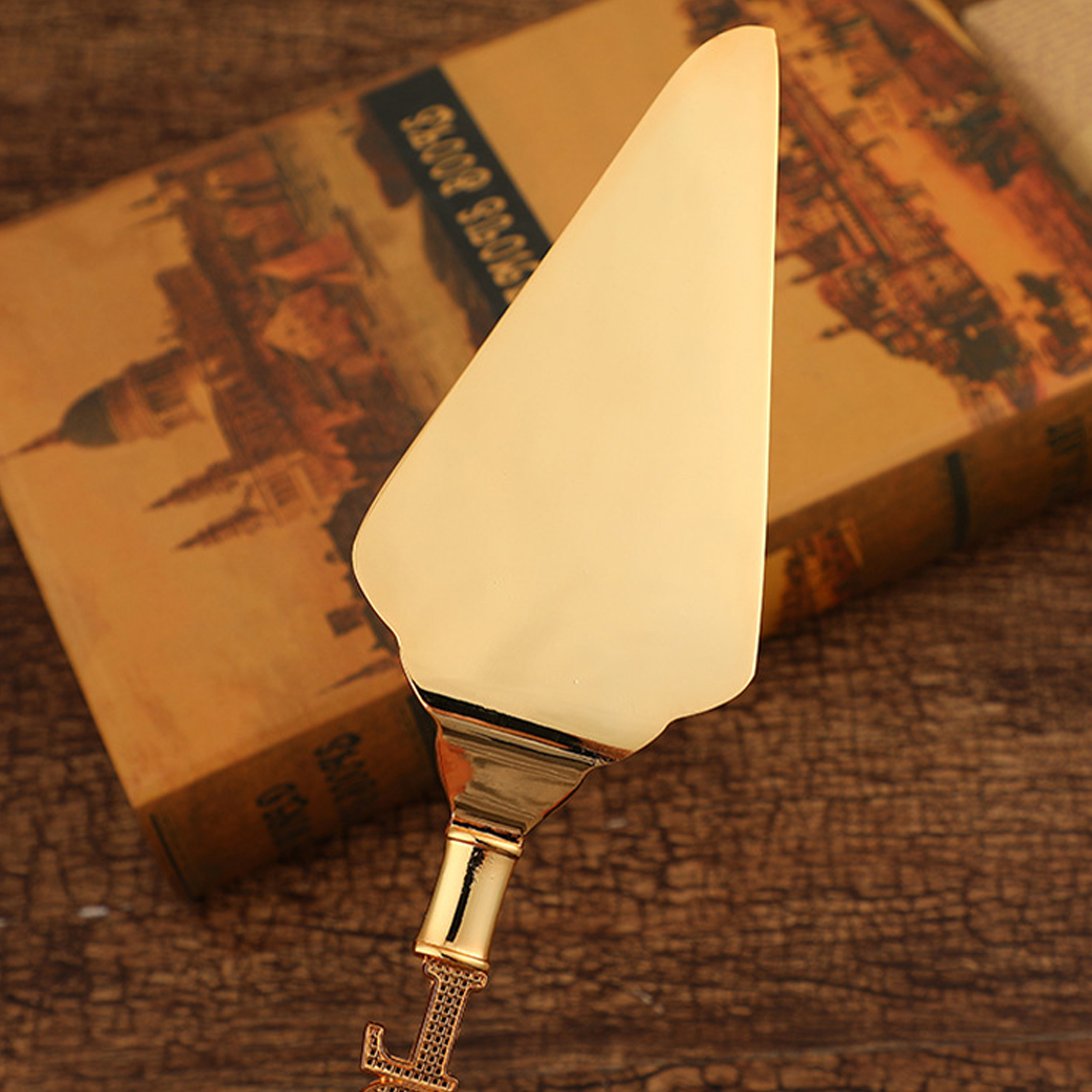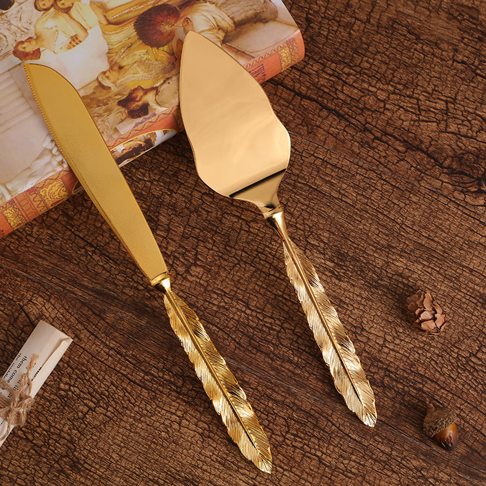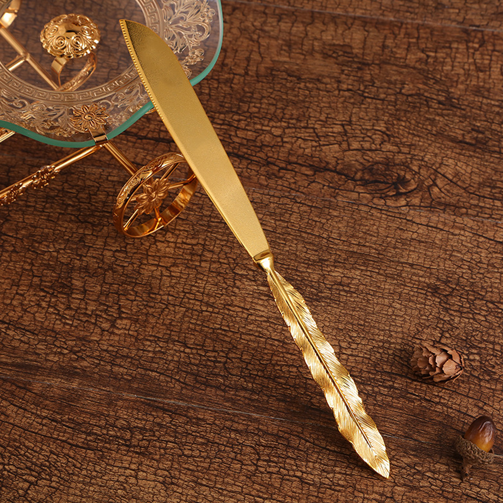 2. Красивый дизайн: нож для торта и серверный набор перьев острое лезвие, золотой цвет, элегантные и винтажные ручки.