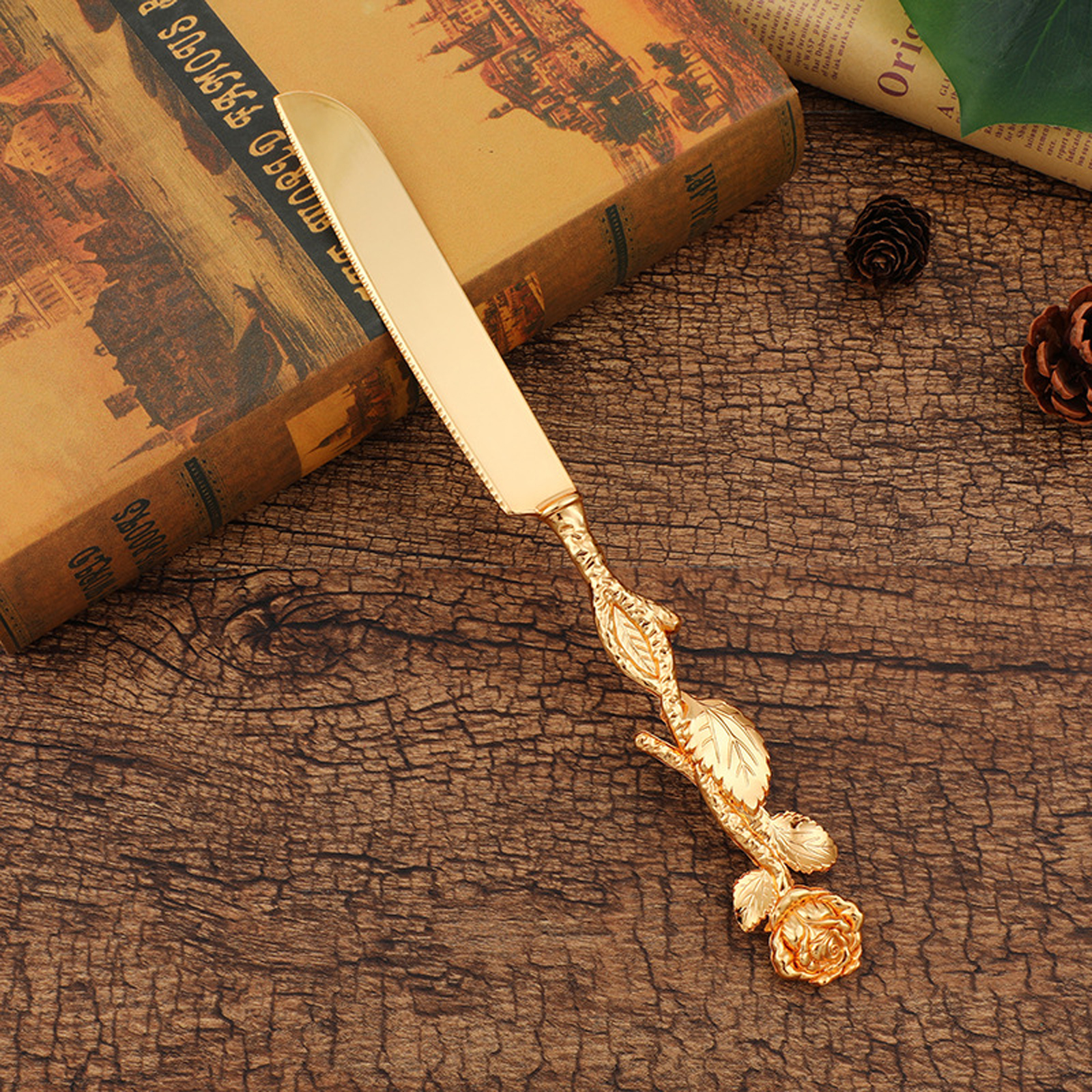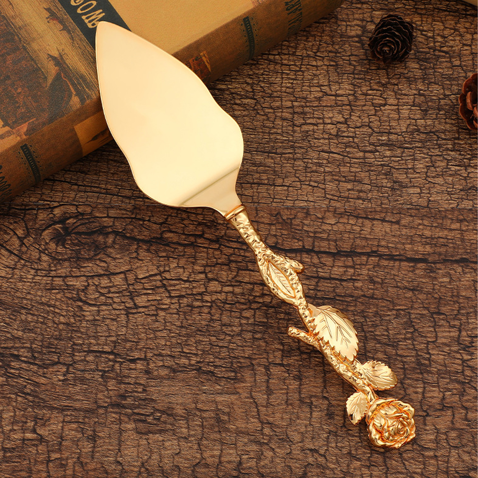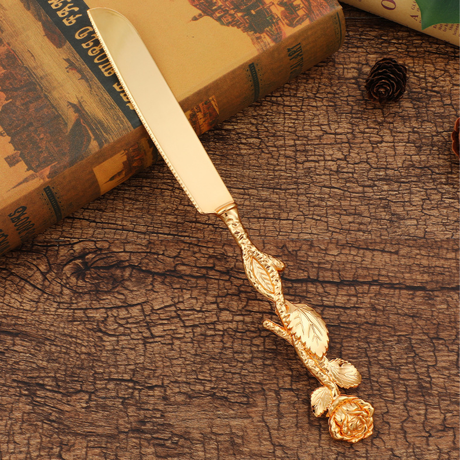 2. Красивый дизайн: нож для торта и серверный набор перьев острое лезвие, золотой цвет, элегантные и винтажные ручки.