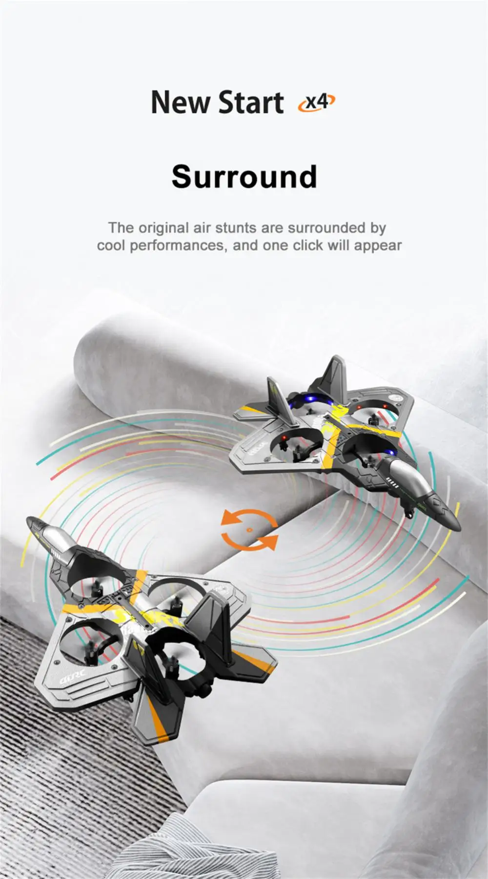 2,4 ГГц, никаких помех. Летайте вперед, назад, Поворачивайте влево/вправо, вверх и вниз, левую и правую сторону Летайте, катайте влево и вправо.