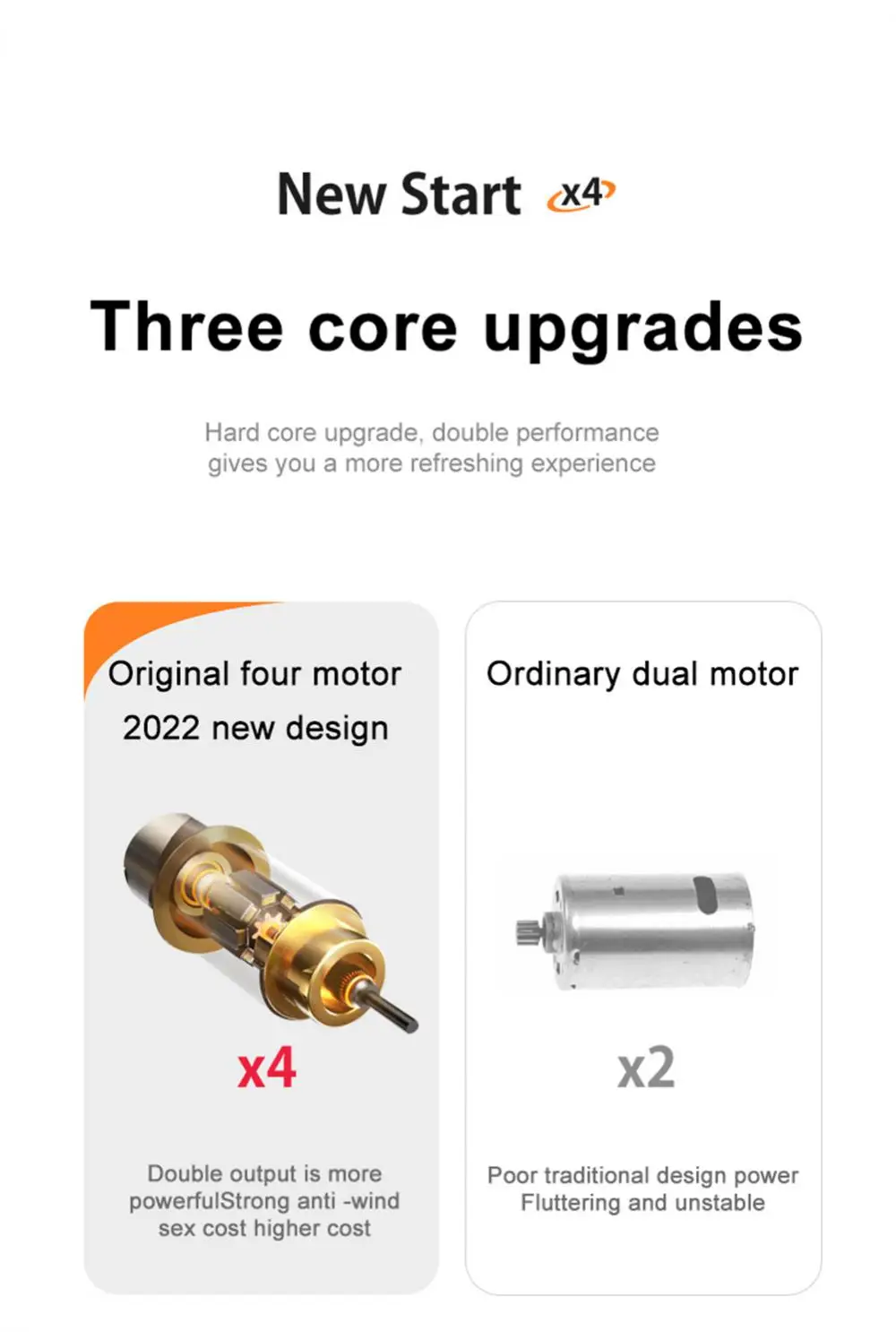 Мощные 4 мотора. Он принимает высокоэффективный пневматический контурный дизайн, обеспечивает хорошую стабильность, работоспособность и плавность.