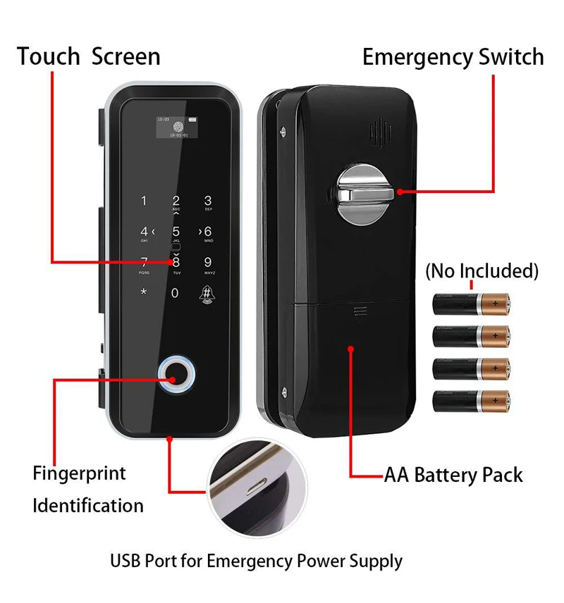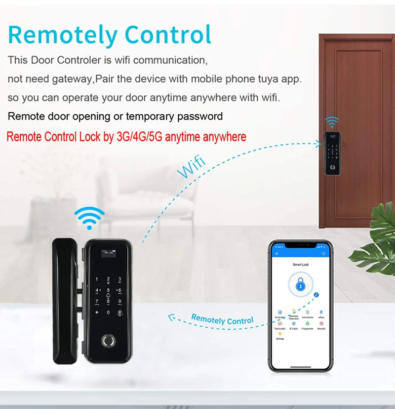 Сканер отпечатков пальцев 2,4G Wifi Tuya APP RFID Код Карты Электронный Умный Замок для безрамных стеклянных раздвижных дверей без ключа без проводки