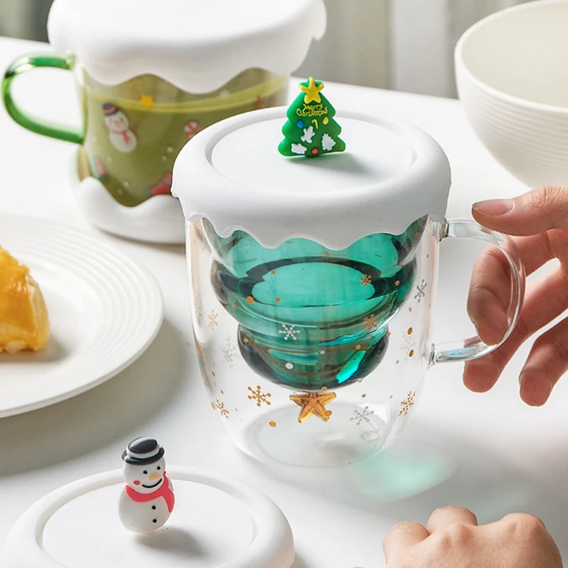 Двухслойная стеклянная чашка, плотная Рождественская елка, форма снежинки, креативная 3D прозрачная кофейная кружка для сока, чашка, Детский Рождественский подарок