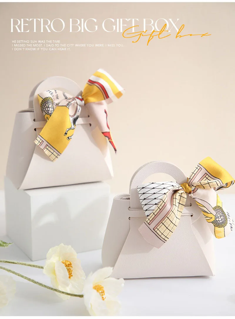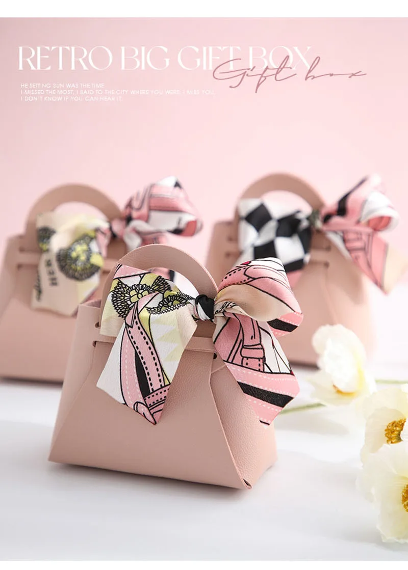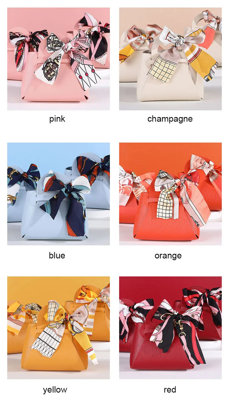 10 шт. кожа подарочные пакеты с бантом из ленты упаковочный мешочек для свадьбы пользу распределения сумки конфеты упаковывая коробка мини Сумочка شنط توزيعات